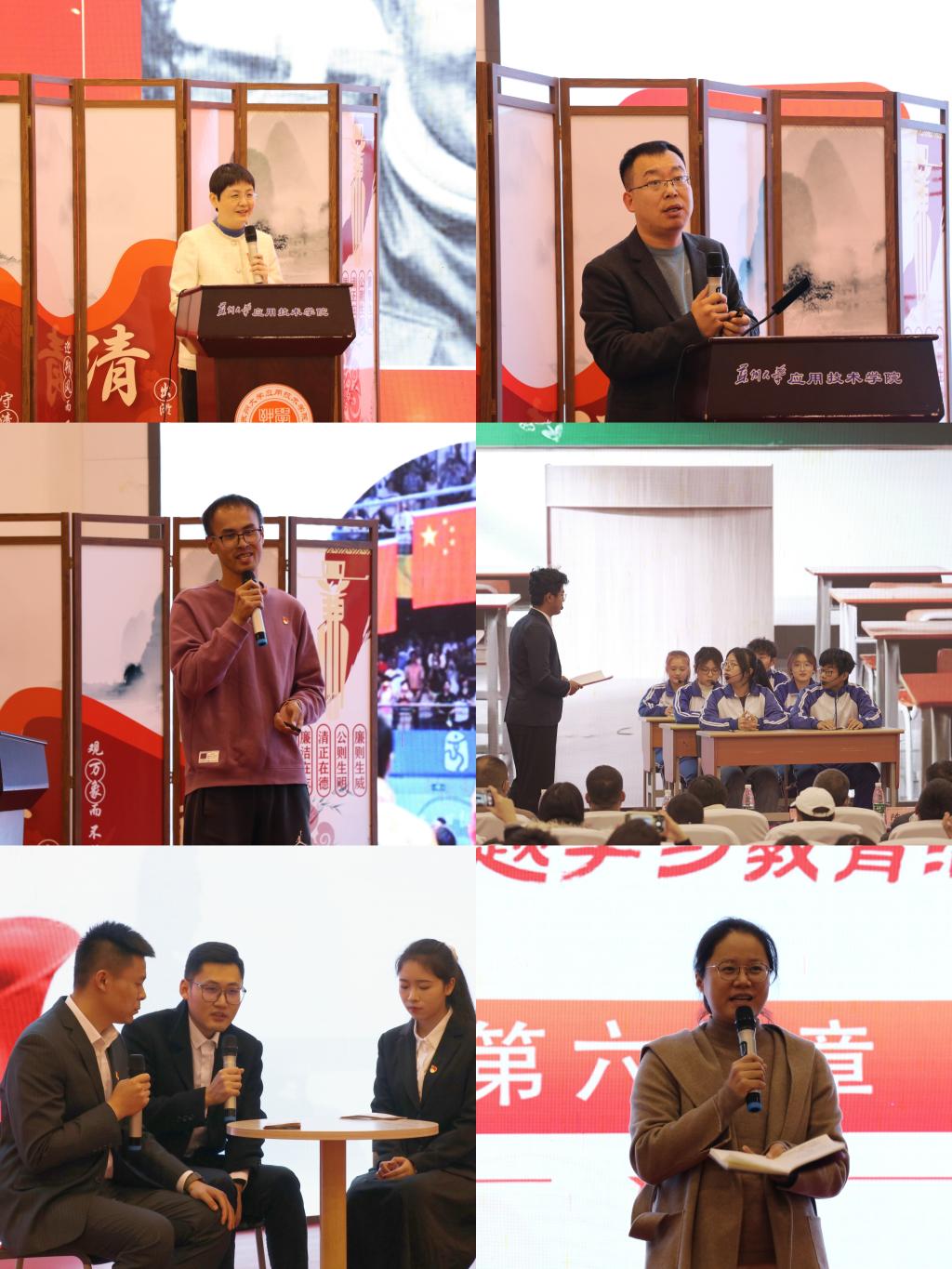 廉洁精神传。通识教育学院第一党支部书记吕小俊老师和通识教育学院第二党支部王靖老师分别以《清廉从教树师德,使命在心正师风》《弘扬体育精神,争做时代模范》为题,向广大师生阐述了廉洁从教的工作经历,廉洁不仅可以家中育,也可师生传。“燃灯校长”张桂梅的感人故事,鼓舞着师生有信仰才会有力量;运动赛场上努力奋斗、公平公正的的大国体育精神,更是激励着一代代青年学子奋勇向前,勇攀高峰。