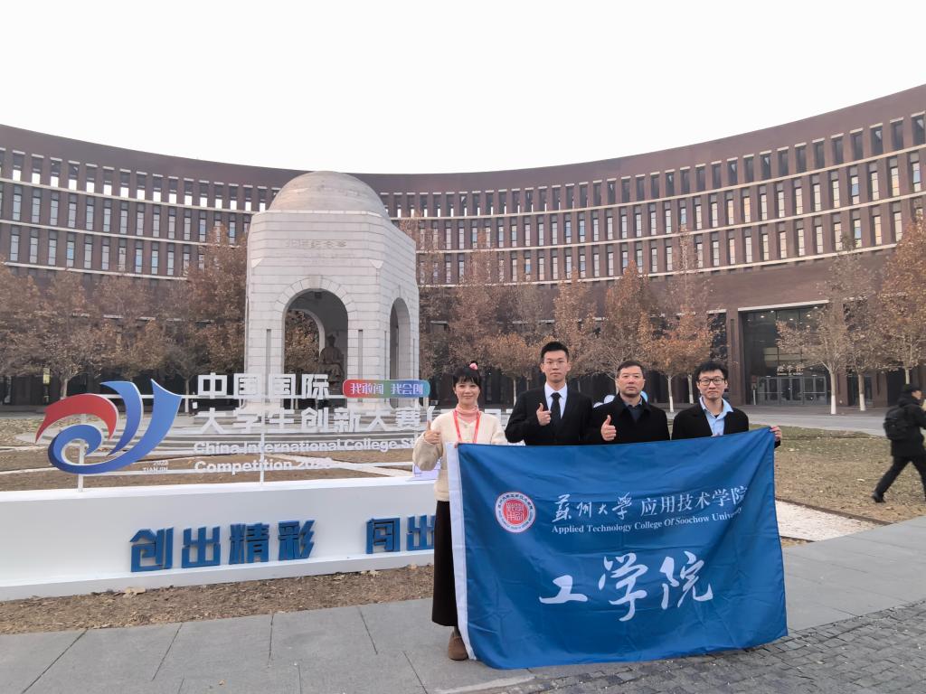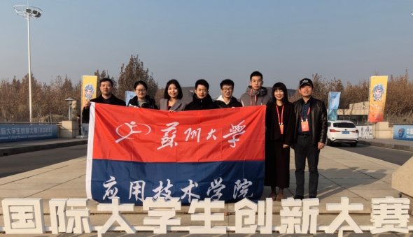 参赛团队在赴天津前夕,学院举行了出征仪式。我院院长傅菊芬,党委副书记、副院长钮秀山及相关职能部门负责人出席仪式。傅菊芬作动员讲话并授旗出征,为参赛师生加油鼓劲。她寄语参赛师生一要珍惜机会,慎终如始,全力以赴;二要重视对手,注重细节,全力备赛;三要释放压力,敢闯会创,全力拼搏!最终,参赛师生不负重托,超额完成任务,在这项中国影响最大、规模最广、参赛度最高的创新创业大赛金牌榜刻上了苏州大学应用技术学院的名字。