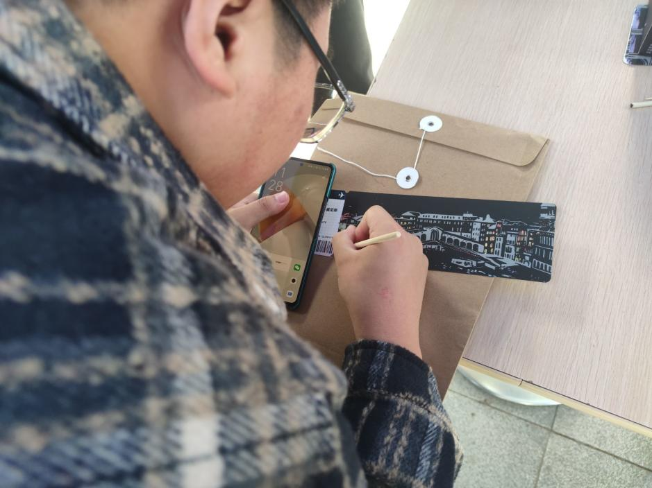 纵享指“尖”艺术活动中,同学们用竹笔在刮画纸上一笔一划认真地勾勒、描摹、创作,通过刮画纸的形式,享受创意绘画乐趣,表达内心世界,释放压力烦恼,加深自我觉察。