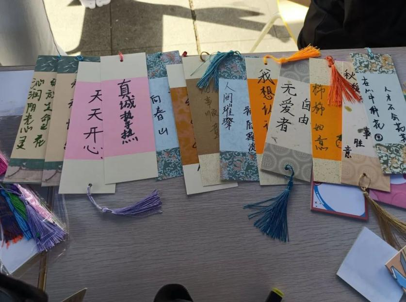 巧手定“格”诗意活动中,同学们利用现场提供的聚丙烯颜料、流苏、马克笔等工具,在外观设计上别出心裁、在内容创作上尽情发挥,创作出独属于自己的国风书签,感受创作带来的千万种可能性,释放压力、舒缓身心、收获成长。