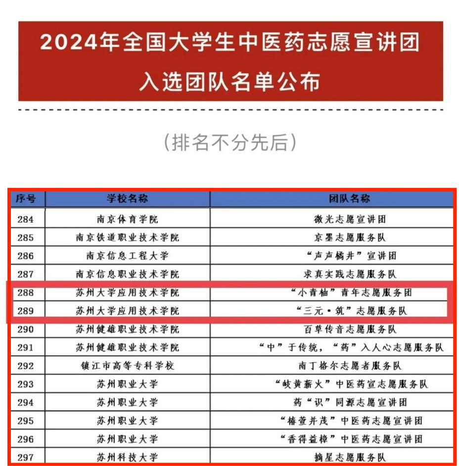 为深入学习贯彻习近平文化思想,深入学习贯彻习近平总书记关于中医药工作的重要论述,引导青年学生学习中医药知识,掌握中医药技能,传承中医药文化,促进中医药传承创新发展,切实把中医药这一宝贵财富继承好、发展好、利用好,团中央青年志愿者行动指导中心、国家中医药管理局综合司、北京中医药大学、中共庆阳市委、中国青年志愿者协会秘书处联合发布了《关于遴选2024年全国大学生中医药志愿宣讲团的公告》,活动得到了各高校志愿服务团队的广泛关注和积极参与,来自北京大学等406所高校的1000支大学生志愿服务团队入选。经过材料报送,主办单位评审等环节,我院“小青柚”青年志愿服务团、“三元·筑”志愿服务队成功入选2024年全国大学生中医药志愿宣讲团。