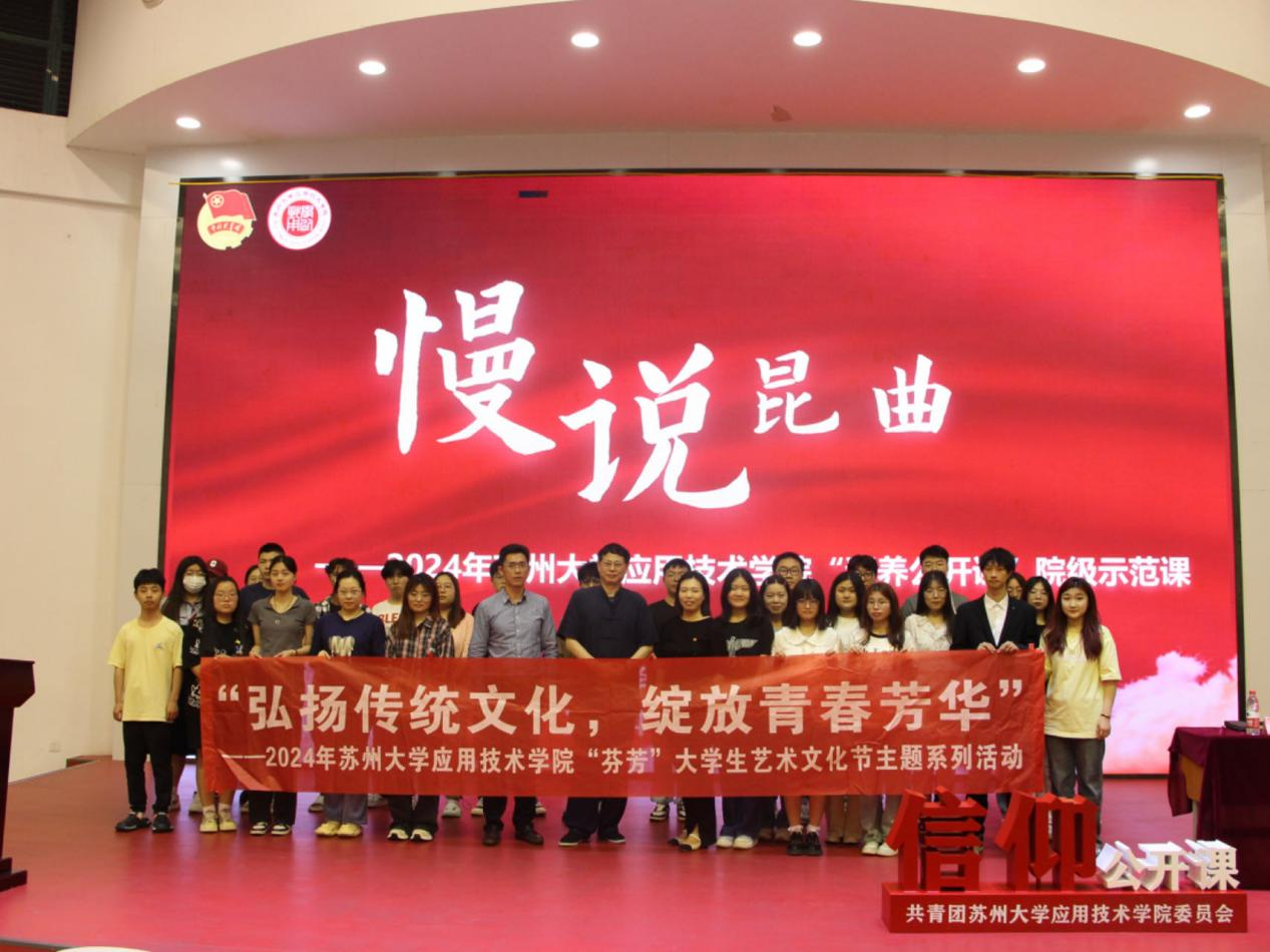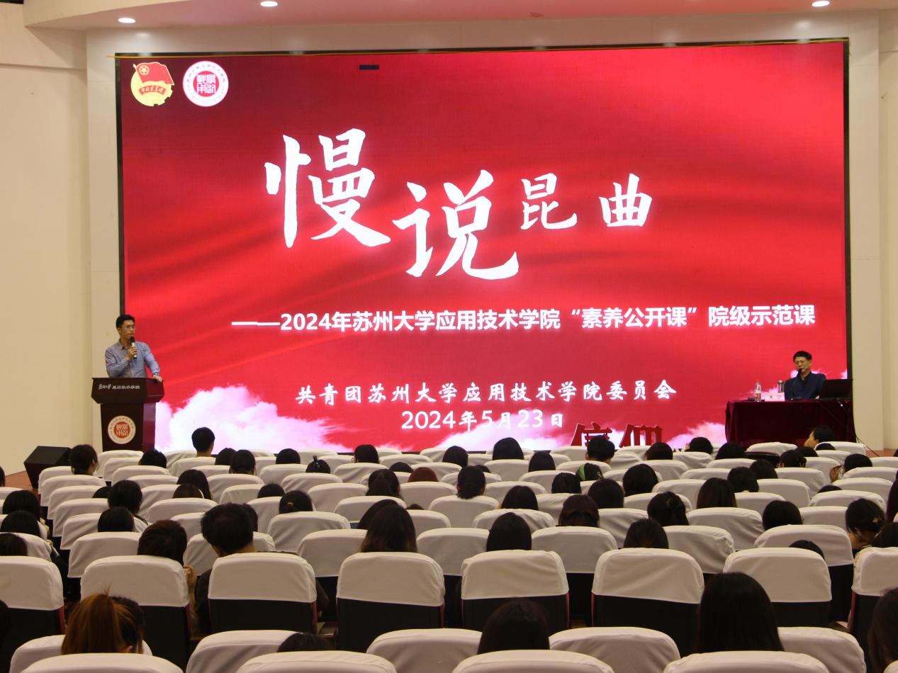 为深入学习贯彻习近平新时代中国特色社会主义思想和党的二十大精神,根据2024年苏州大学应用技术学院 “芬芳”大学生艺术文化节活动的总体安排,为弘扬中华优秀传统文化,让更多的学生走进昆曲、了解昆曲,提升广大同学的艺术鉴别力和艺术欣赏力,学院于5月23日在图书馆五楼报告厅举办“慢说昆曲”——苏州大学应用技术学院“素养公开课”院级示范课。本次素养公开课由苏州大学文学院王宁教授主讲,共计三百余人参与活动。