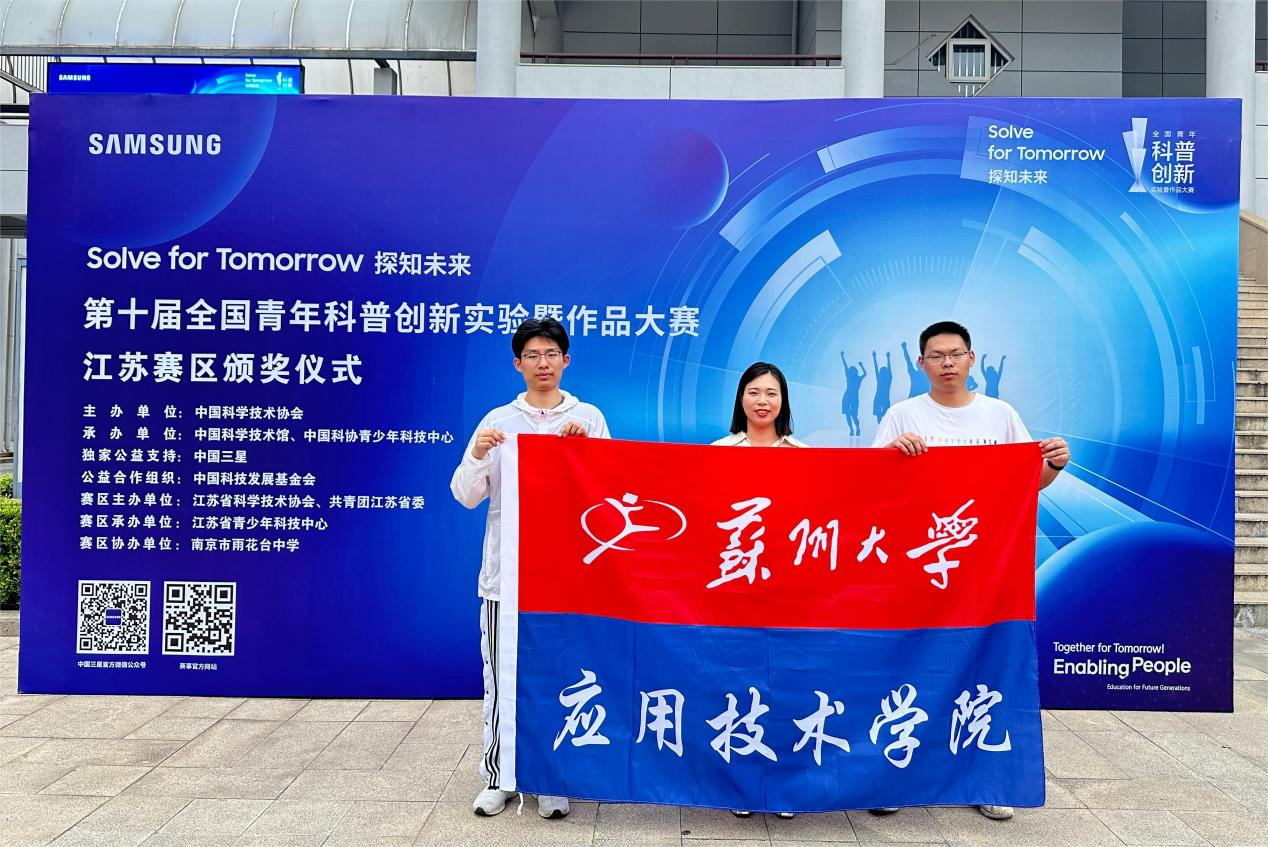 5月26日,第十届全国青年科普创新实验暨作品大赛江苏赛区颁奖仪式在南京市雨花台中学举行。本次大赛由江苏省科学技术协会、共青团江苏省委、江苏省青少年科技中心共同举办。最终,学院团委选送的参赛作品获一等奖1项,三等奖2项,张景扩、段元芳获评“优秀指导教师”,学院获评“优秀组织单位”。