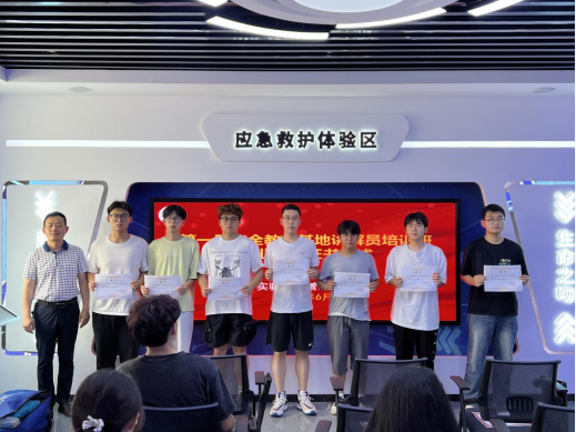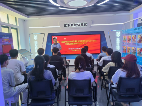 为充分发挥学院安全教育基地服务功能,广泛普及安全生产知识,打造安全教育品牌,扩大学院影响力,实验实训管理中心本学期举办了首届安全教育基地宣讲员培训班。6月14日,培训班在安全教育基地举行了结业式。实验实训中心主任朱志强为通过考核并结业的14名宣讲员颁发了聘书,并为“人人讲安全,个个会应急”安全宣讲短视频大赛获奖的同学颁发了荣誉证书。