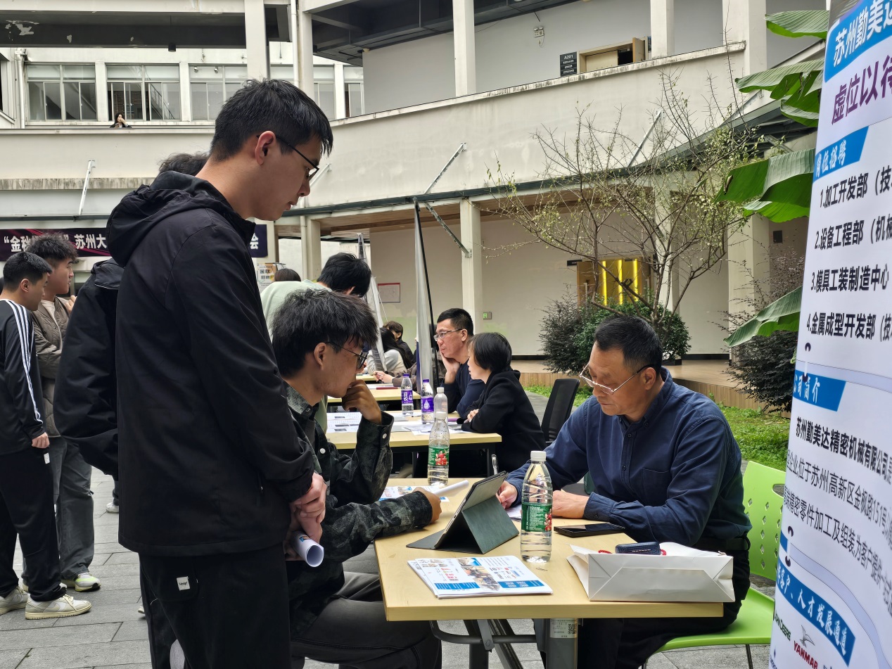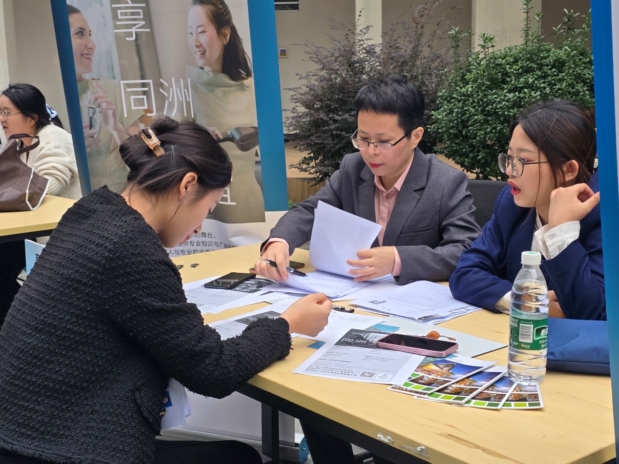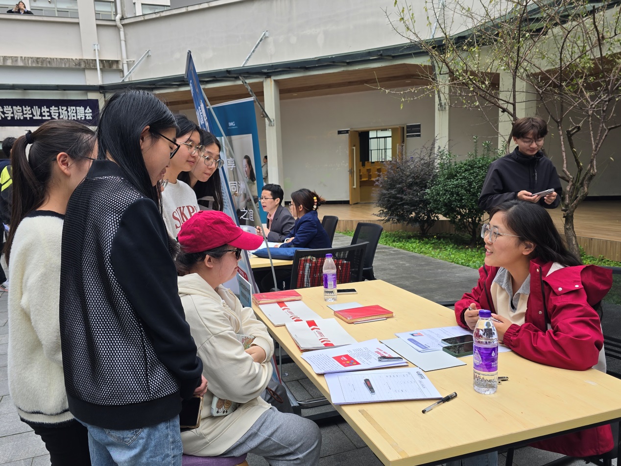 “请问岗位的具体用人要求是什么?”“请问公司对管培生这一岗位的培养体系是怎样规划的?”“运营岗位的薪资福利待遇如何?”同学们积极投递简历,与招聘人员们深入交流,详细了解企业的岗位需求、培养体系、福利待遇等信息。企业招聘人员耐心回应,认真解答。
