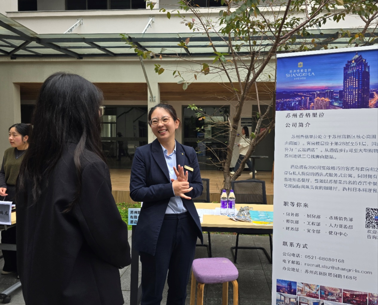 10月30日下午,商学院2025届毕业生招聘会(苏州高新区枫桥街道企业专场)在安如楼中庭举行。本次招聘会提供了120余个岗位需求,涵盖运营、营销、财务、管培、技术员等多个领域。