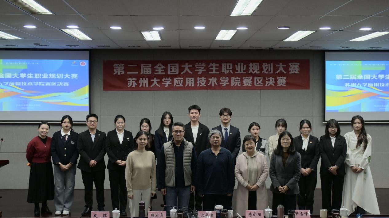11月26日,第二届全国大学生职业规划大赛苏州大学应用技术学院赛区选拔赛决赛在我院孚新楼102报告厅举行。苏州农业职业技术学院招生就业处处长沈长生,我院工学院副院长、智能制造研究院执行院长陈再良,商学院常务副院长陈向阳,周庄文旅学院副院长尹雪峰和招生就业处副处长夏菲担任决赛评委。招生就业处处长周柏海、参赛选手指导教师,以及部分在校生现场观摩。