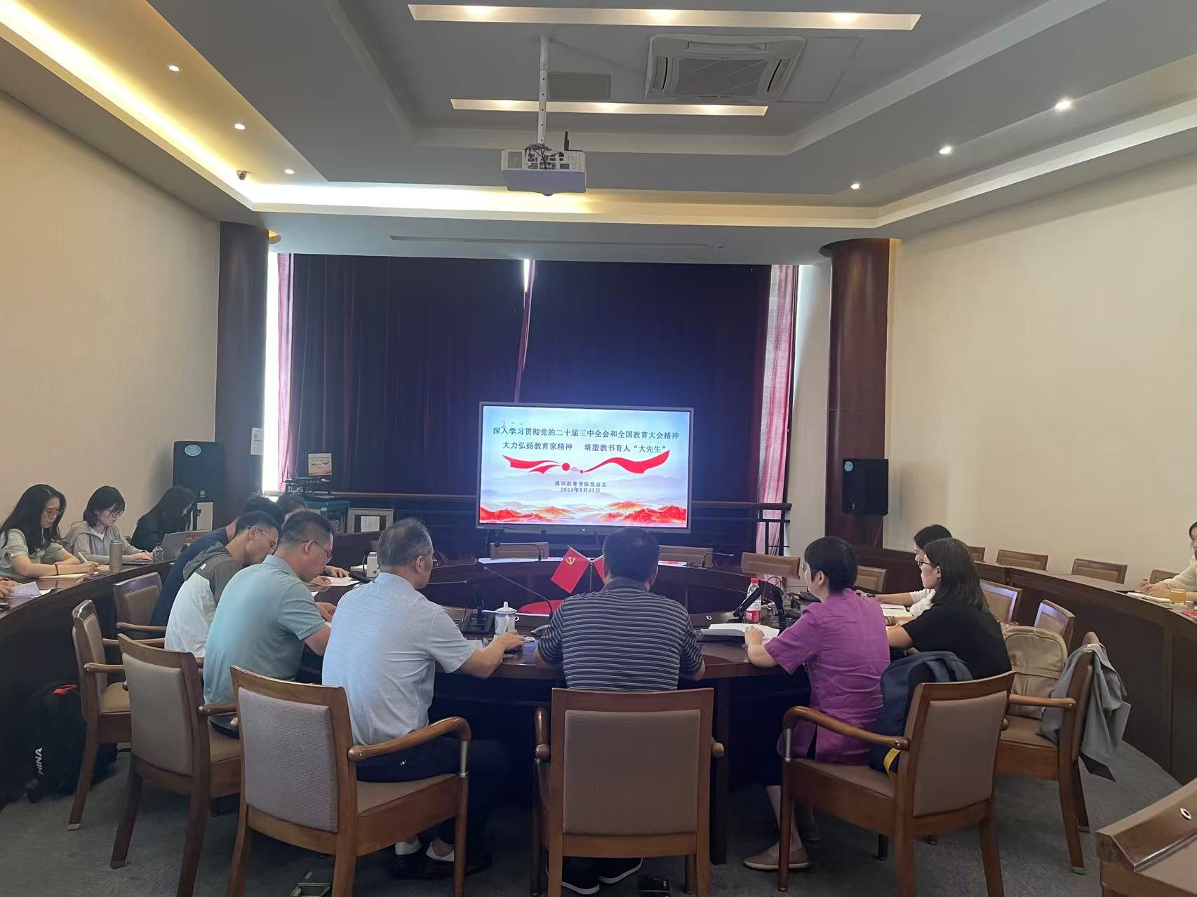 为深入贯彻落实党的二十届三中全会和全国教育大会精神,准确把握新时代教育工作的新要求,积极响应学院“面向未来的教学创新动员”,通识教育学院党总支于2024年9月27日下午召开“深入学习贯彻党的二十届三中全会和全国教育大会精神 大力弘扬教育家精神 培塑教书育人‘大先生’”主题党日活动,会议特邀教学科研部部长刘和剑出席。
