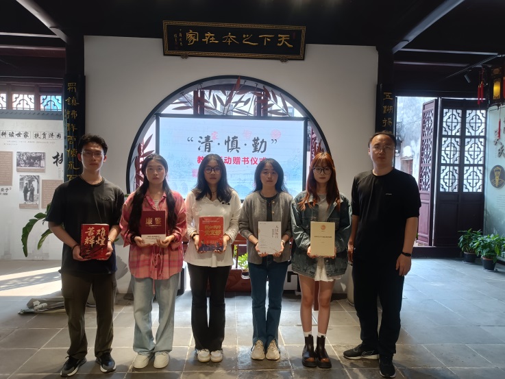 参观结束后,支部纪检委员周剑将《习近平的七年知青岁月》《红色家规》等书籍赠予支部同学们。他说,“党纪学习教育不仅要入脑入心,更要见行见效,希望大家以书为鉴,以廉为尺,让廉洁之花在心中常开不败”。随后,周剑带领支部党员在“新时代家风实践”展区前重温入党誓词。
