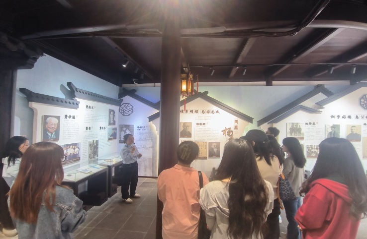 在馆内,讲解员带领同学们依次参观了“风范世家”“家风典故”“吴江名宦”三大展示区,学习了陈去病、柳亚子、费孝通、程开甲等吴江历代乡贤名流的优秀家风家训,重温了《千里寻母》《饮水思源》等生动故事。师生党员们从这些红色家风中汲取智慧与力量,进一步激发了内心崇廉尚廉的思想自觉,对“清、慎、勤”三个字的内涵有了更为深入的理解。