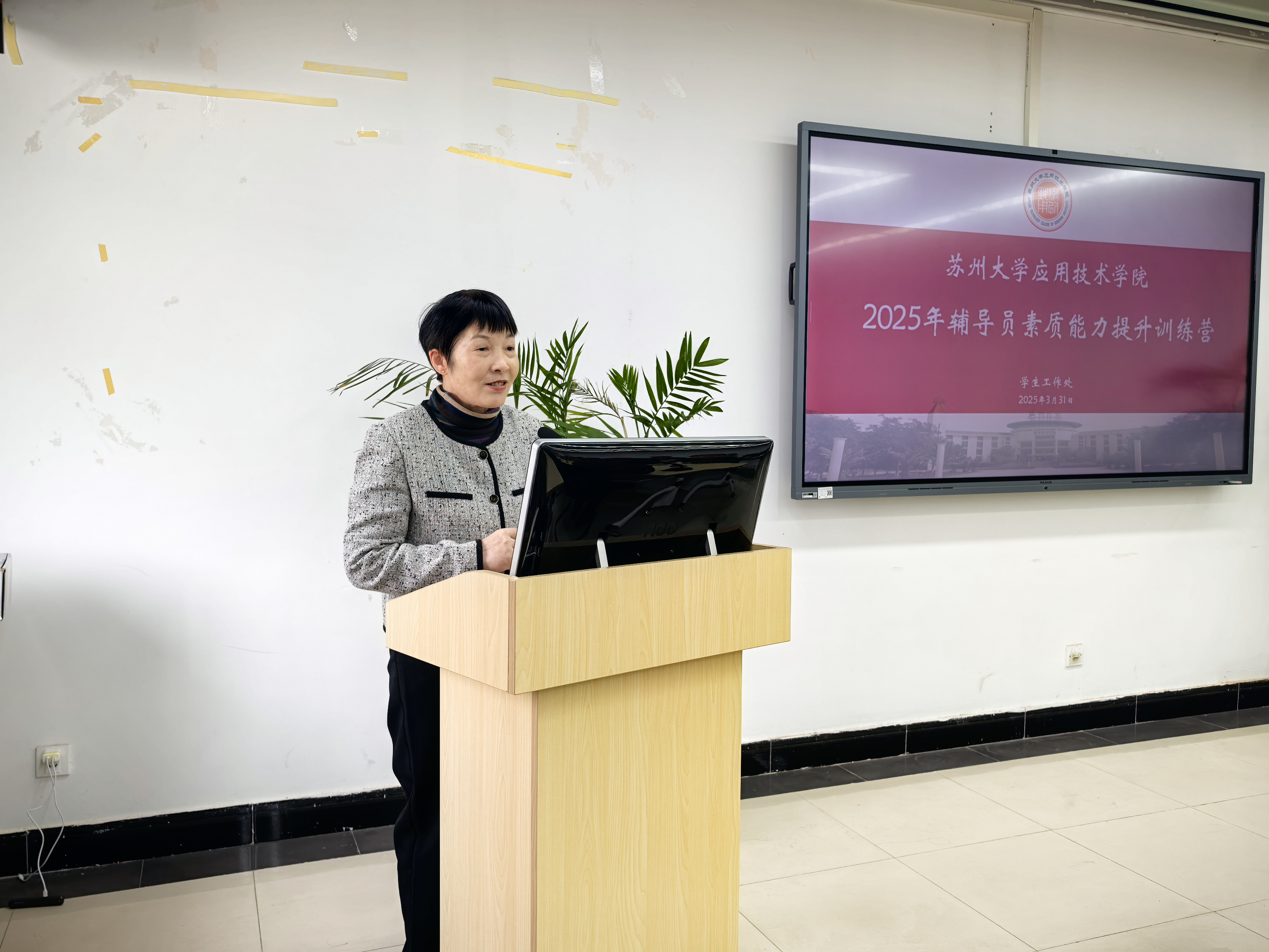 3月31日,我院在实训楼216会议室开展了“辅导员素质能力提升训练营”专家培训。本次培训邀请了苏州大学教育学院黄辛隐教授作“让生命之花绽放在校园”专题讲授,全体专兼职辅导员参训。培训由学生工作处副处长赵林卫主持。