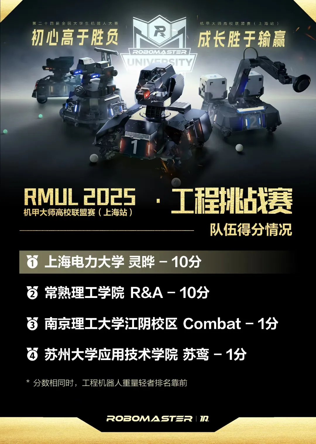 第二十四届全国大学生机器人大赛RoboMaster2025机甲大师高校联盟赛上海站,近日在上海工程技术大学圆满落幕。RoboMaster机甲大师高校系列赛始终秉承“为青春赋予荣耀,让思考拥有力量”的使命,致力于培养具备工程思维的综合素质人才,此次大赛由中国高等教育学会、中国光华科技基金会、中国工程院战略咨询中心指导,全国大学生机器人大赛组委会主办,深圳市大疆创新科技有限公司协办。我院工学院苏鸾战队第二年参赛,与来自上海交通大学、复旦大学、同济大学等40所高校的700余名青年工程师同台竞技,最终获得1项全国二等奖和2项全国三等奖,在工程挑战赛9所高校中夺得第四名。