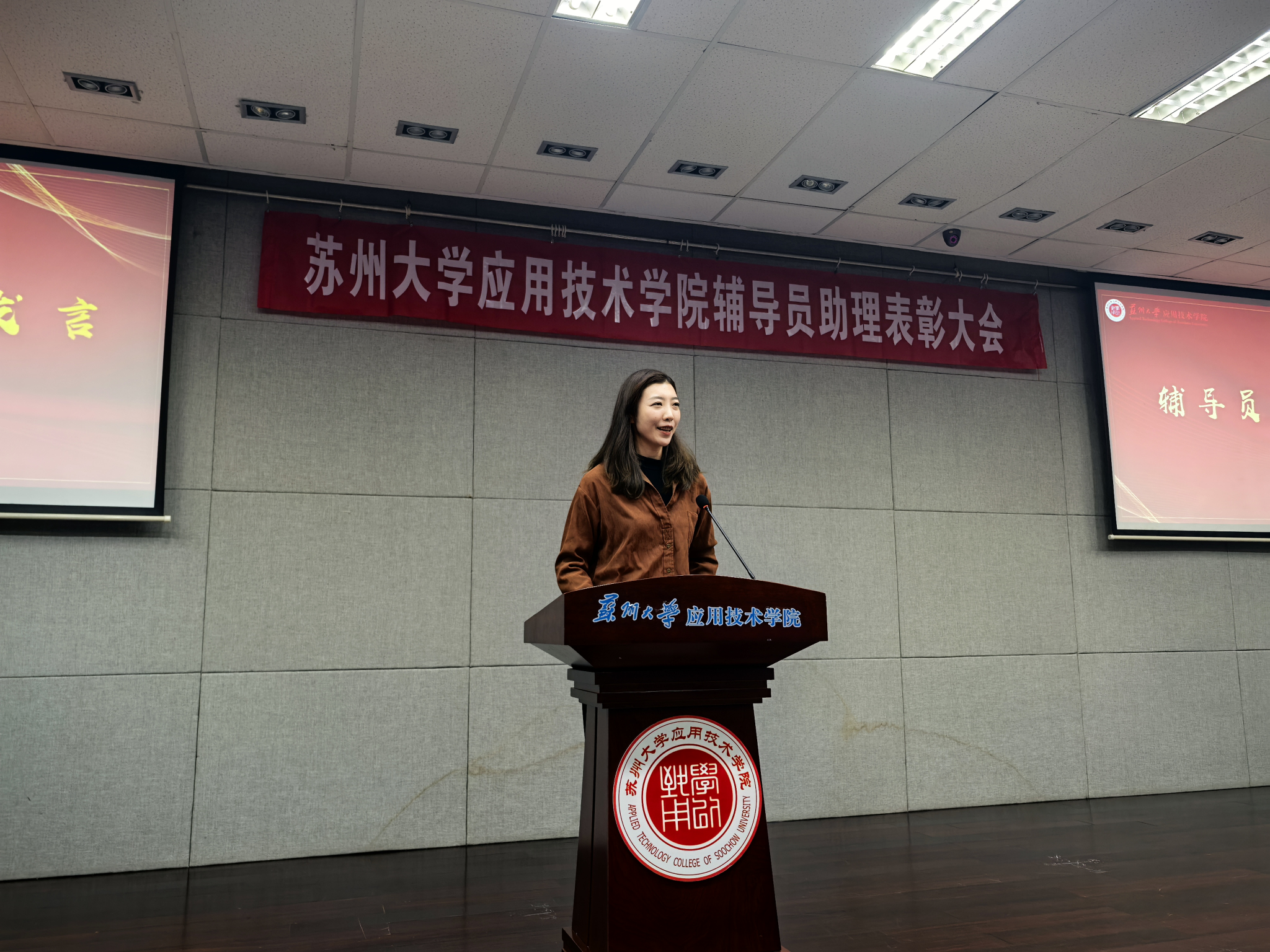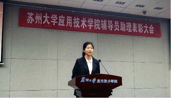 汤泰宣读了表彰名单。在欢快的乐声中开启了辅导员助理颁奖仪式。本次大会共表彰辅导员助理优秀奖8名,辅导员助理工作奖13名,辅导员助理奉献奖20名。