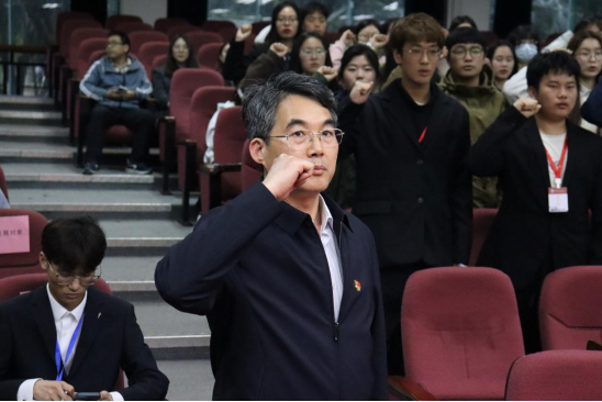 在学院党委副书记、副院长钮秀山的领誓下,新发展党员面向鲜红的中国共产党党旗,高举右拳,庄严宣誓。红色的党旗激励着每一位在场的预备党员坚定理想信念,永葆赤子初心,不懈努力奋斗。作为预备党员,将牢牢恪守在党旗下的誓言,与党同心同德、与时代发展同向而行,积极奋发有为,在新时代建功立业。