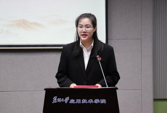 苏州大学2023年第一期预备党员培训班代表,文旅学院学生第一党支部王依琳同学进行发言。王依琳同学表示,作为预备党员,一要做到坚定政治立场,不断提升自身党性修养;二要增强学习本领,自觉提升专业理论水平;三要知行合一,切实发挥先锋模范作用。为实现中华民族的伟大复兴而努力奋斗,贡献出自己的一份力量!