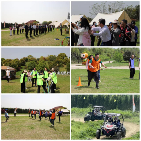最美人间四月天,春风含笑柳如烟。上午九时许,拓展活动在破冰热身项目后正式拉开帷幕。老师们随机分为四组,依次开展了“一圈到底”“持球接力”“原地踏步”等多个团队活动,各队团结协作、全力以赴,赛出了精神和气势。活动现场一片欢声笑语,呈现出健康向上、团结一致的美好画面。最后,“越野跑车”项目将活动推向了高潮,大家都跃跃欲试,在专业人员的讲解下穿戴好头盔和护具,时而加速翻越障碍,时而降速谨慎前进,在飞扬的尘土和擦身而过的林间草木中飞驰回转,感受了一场畅快淋漓的运动体验。