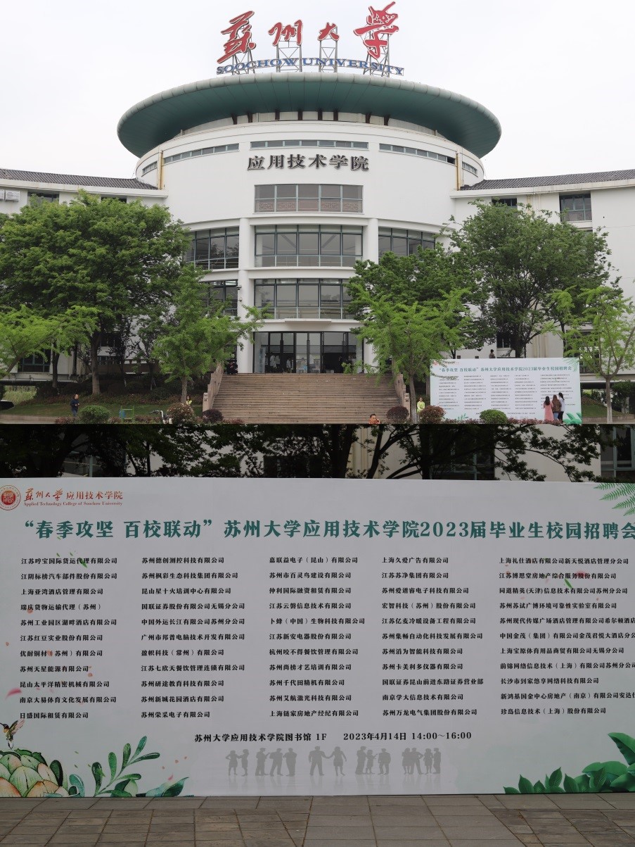 为深入学习贯彻党的二十大精神和全国两会精神,全面落实党中央、国务院“稳就业”“保就业”决策部署,根据教育部《关于开展2023届高校毕业生春季促就业攻坚行动的通知》文件精神,抢抓2023年春季开学后促就业工作关键期,促进毕业生高质量充分就业,4月14日下午,“春季攻坚 百校联动”苏州大学应用技术学院2023届毕业生校园招聘会在我院图书馆举办。