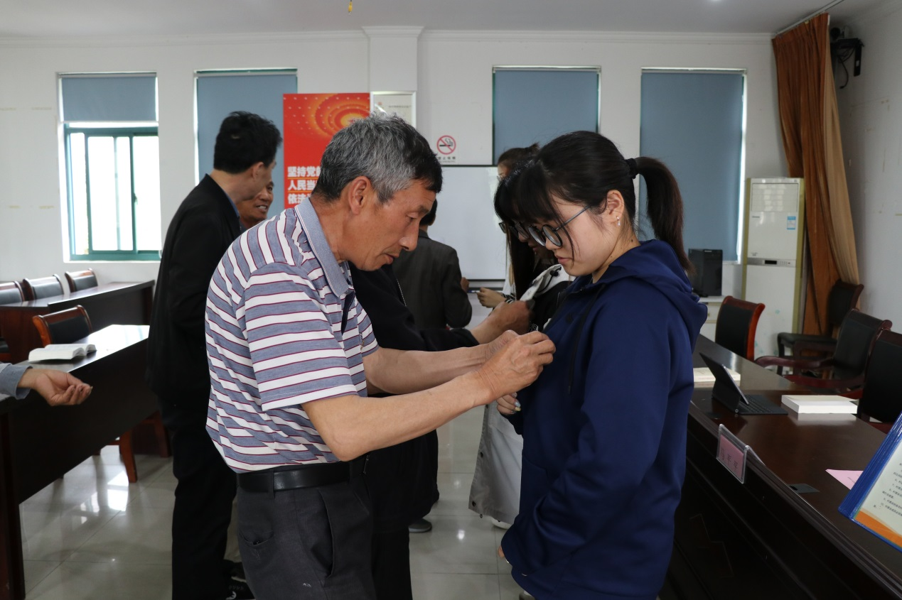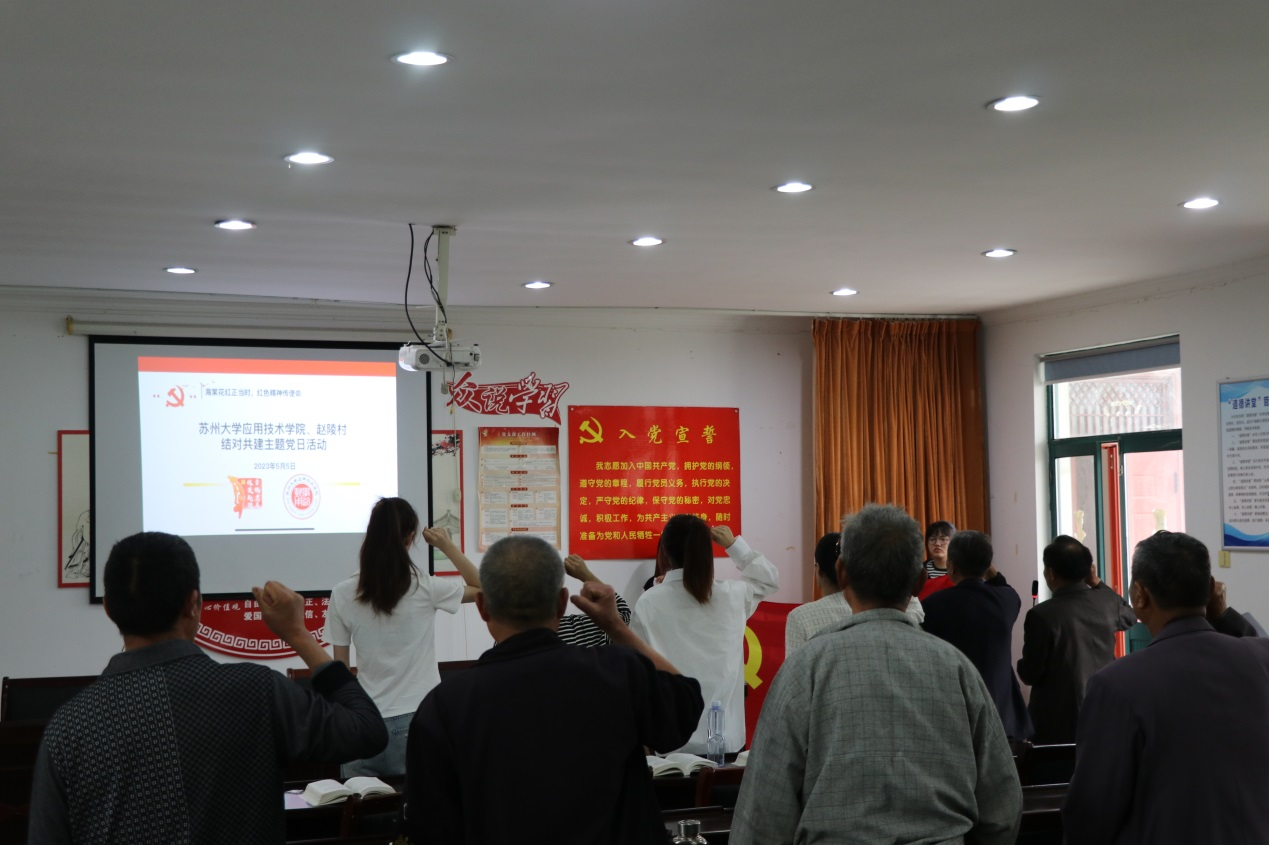 随后,老党员代表、赵陵村原党总支书记马桂林同志为青年党员佩戴党徽,并带领青年党员重温入党誓词。全体党员面向党旗,举起右手、紧握拳头,庄严宣誓,体现了全体党员对党的无限忠诚和热爱。