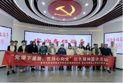 为深入学习贯彻党的二十大精神,提升党员传统文化修养、业务能力、决策水平和服务本领,5月17日下午,我院机关第四党支部与周庄人民医院党支部在乡村振兴讲习所开展“服务师生践初心,校医联动健康行”党建共建系列活动之“党课下基层、医路心向党”红色精神宣讲活动,活动由我院机关第四党支部书记徐卫斌主持。