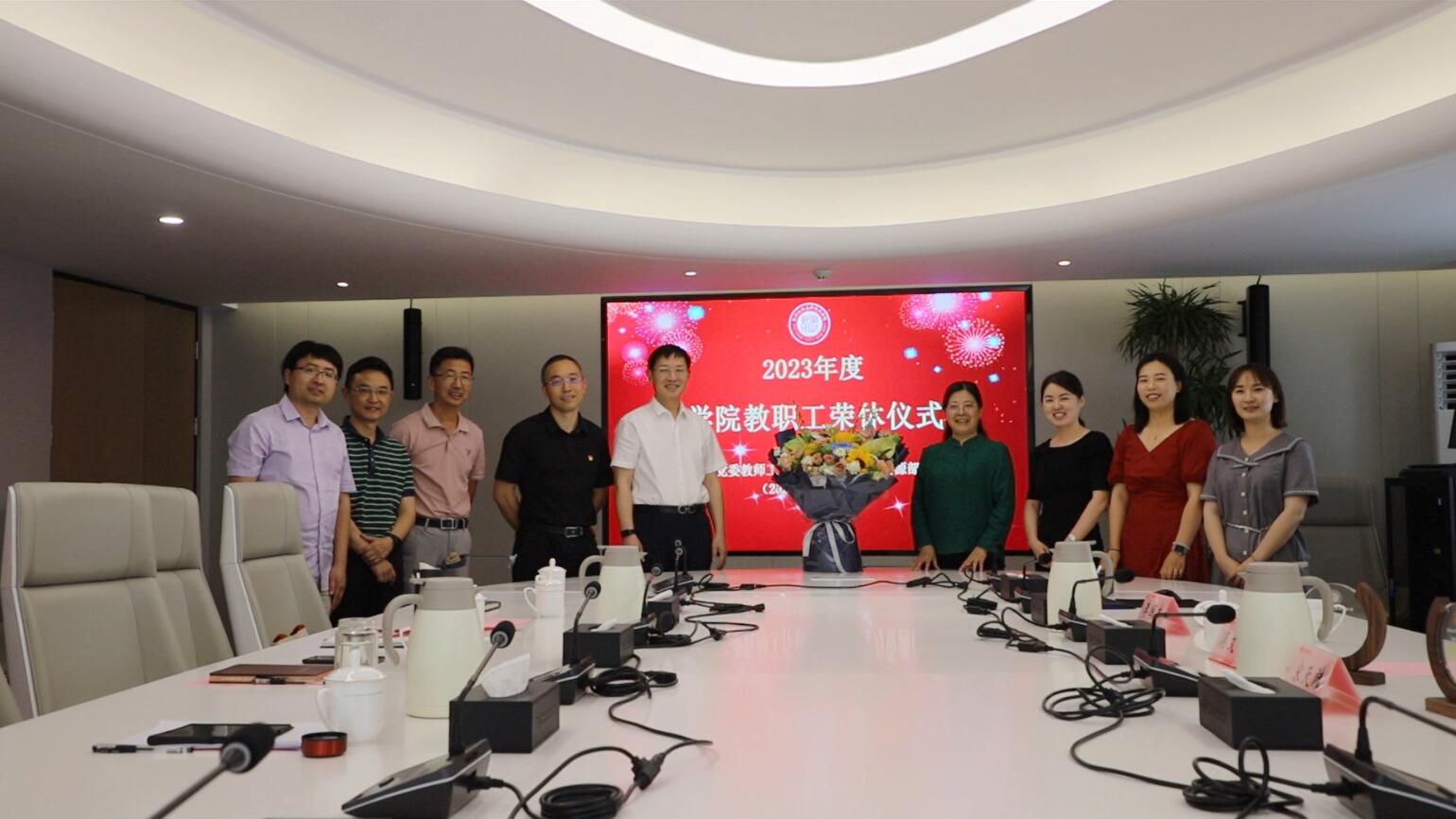 为表达学院对退休教职工多年来辛勤耕耘的致敬与感恩,延续尊师重教优良传统,6月16日,学院为2023年度退休的教职工举行了荣休仪式。傅菊芬院长、孙庆民书记以及退休教职工所在部门代表等出席荣休仪式,欢送祝文涛、浦文倜、宋天麟、付宝根、李国杰五位教职工光荣退休。