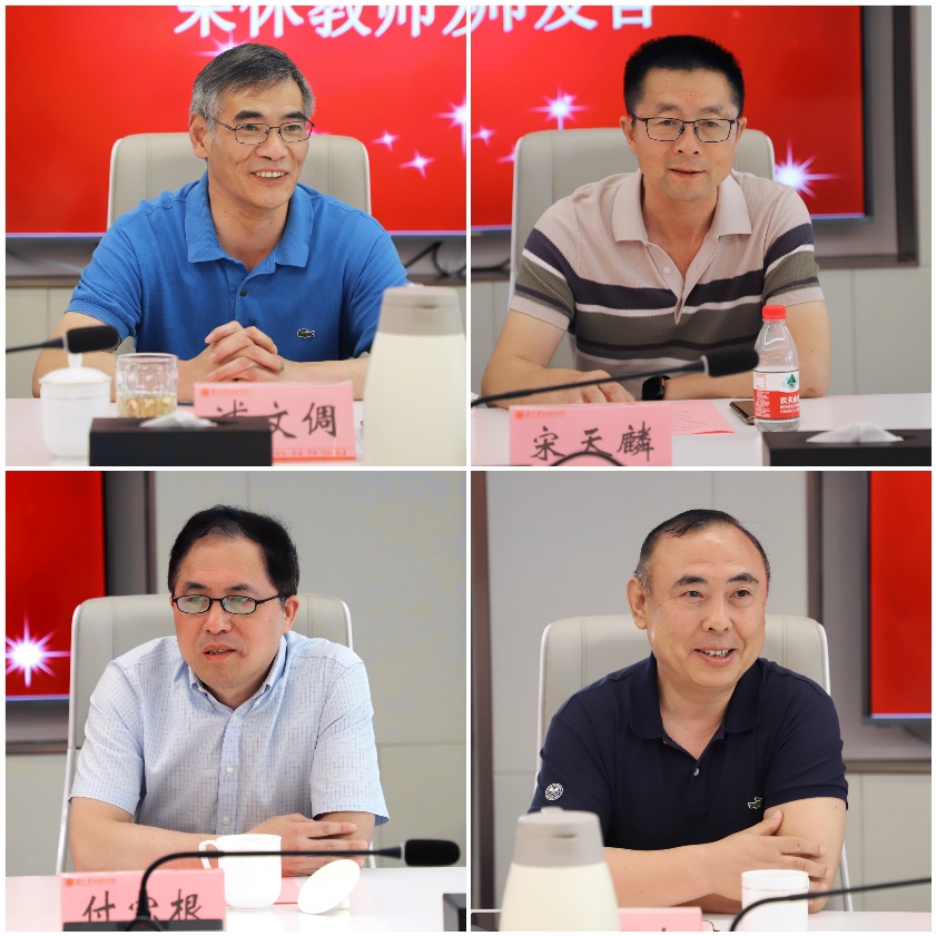 随后,四位荣休教职工纷纷回忆近四十载的峥嵘岁月,分享在教书育人和科学研究方面的心得体会,千言万语汇聚成对学院的感谢与留恋。