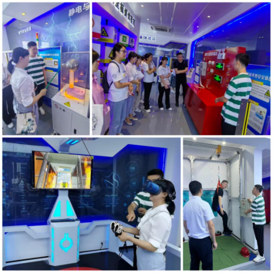 工作人员讲解并演示了现场作业时可能出现的各种风险及防护措施,让大家直观地了解工作过程中,必须按照操作规程操作,做好防护措施,保障人身安全。随后,工作人员向大家详细讲解了常见的安全用电、消防器材的正确使用方法、人员急救的处理方法等。学员们在过程中与工作人员积极互动,体验了模拟灭火、安全帽撞击试验、高空坠落、机械夹卷等多个项目,从而对校园学习生活中可能发生的风险与对应的防护措施有了更为清晰的认识。在VR体验项目中,学员们通过佩戴VR眼镜,体验各类安全事故应急处置模拟演练,“亲历”寻找学生宿舍隐患点、火灾逃生等场景,深化对学校管理安全隐患的认识。