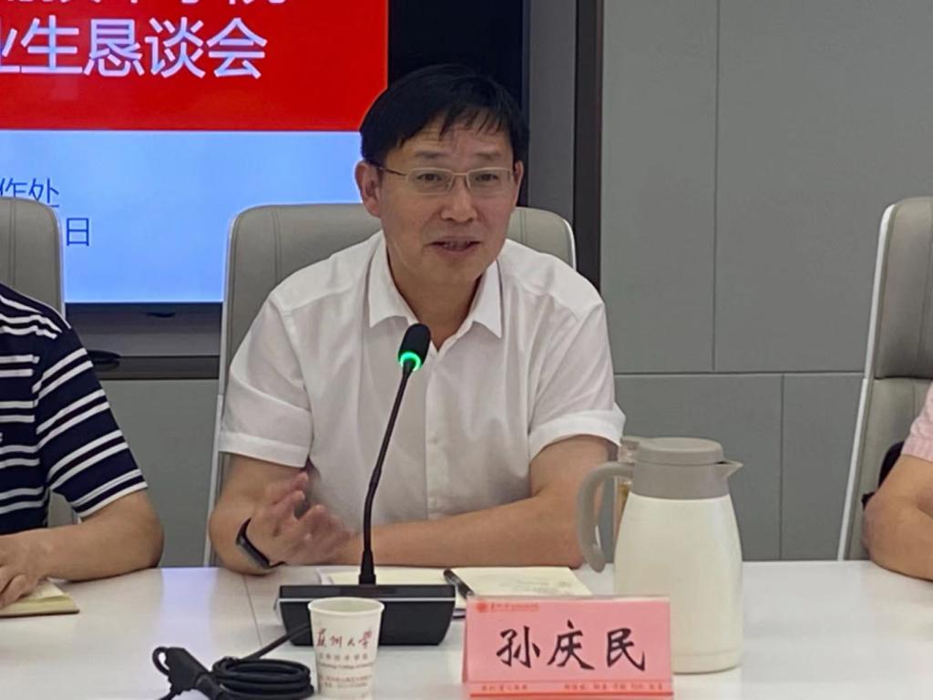 孙庆民感谢同学们积极参与恳谈会,为学院建设和发展提出宝贵意见。希望同学们重视人生新的起点,从“洒扫、应对、进退”做起,要洒扫个人形象与个人心态,做到三省吾身;要应对处理好各类人际关系,加强与父母联系,建立深度的情感沟通,保持与母校联系,以校友的身份相互成就,建立与同事的良好关系,做到谨言、慎行;要学会职业生涯中的加减乘除,既要顶天,又要立地,遵循良知,遵守规范,做好人生的长期规划,以努力上进的姿态,在工作岗位上展示最好的自己,做出更好的成绩。最后,他为同学们送上毕业祝福,祝同学们前程似锦,希望大家步入工作岗位后继续关注母校、心系母校,多保持联系、多提供反馈,常回母校看看。