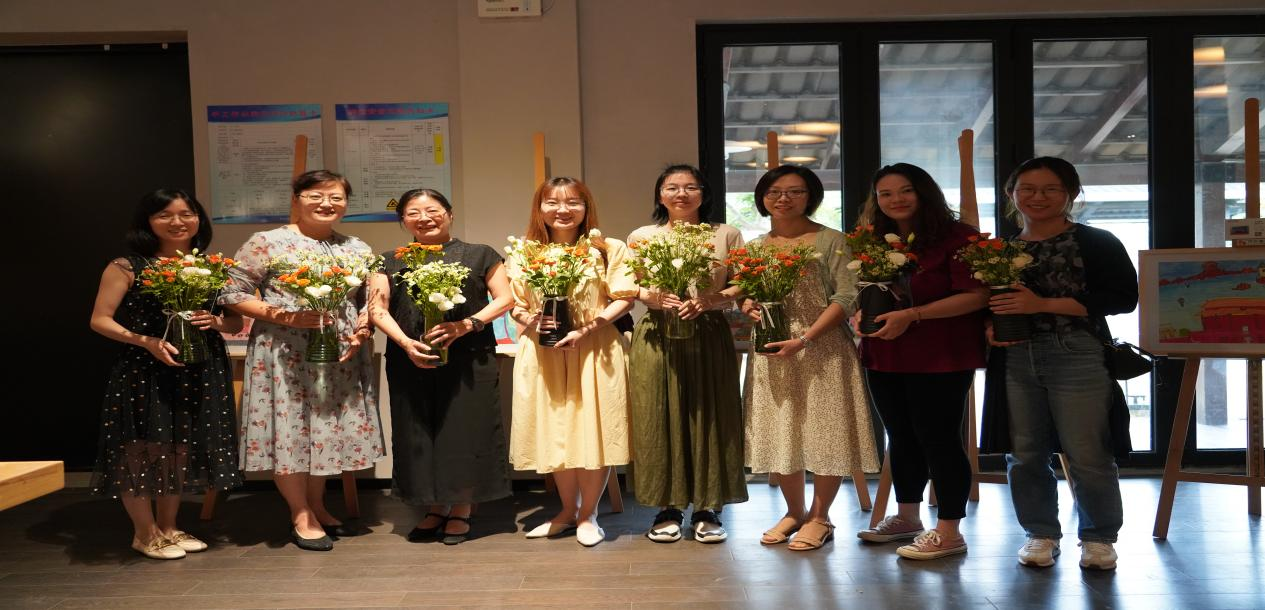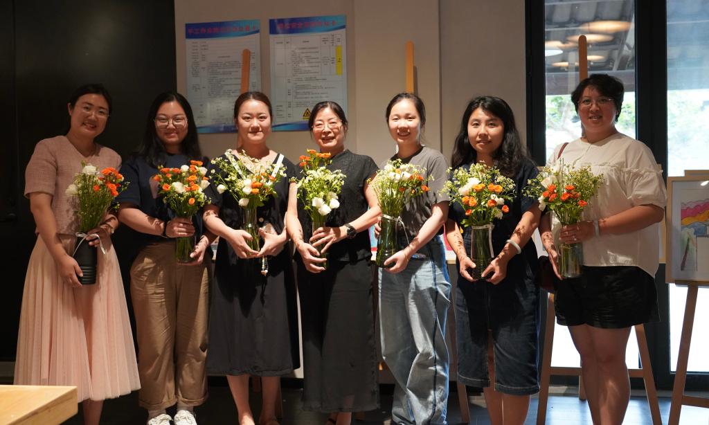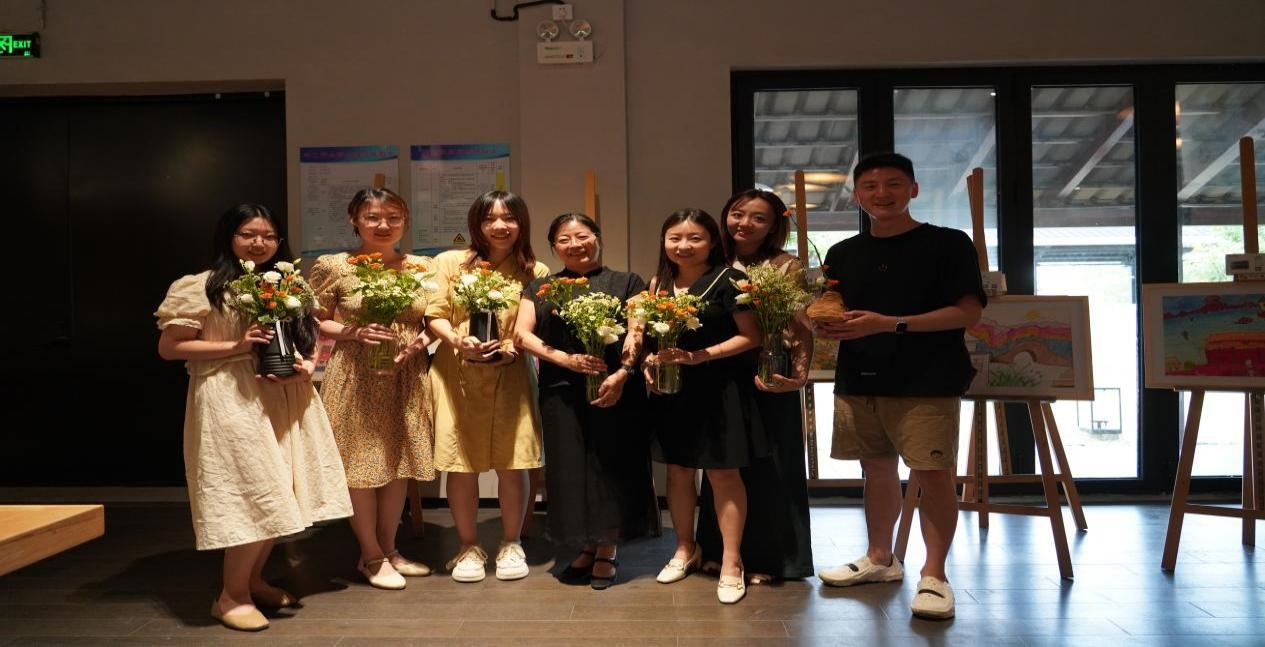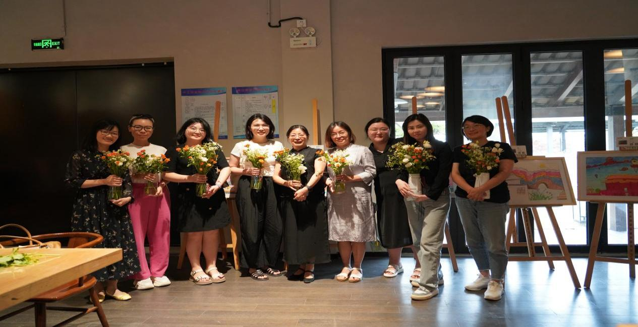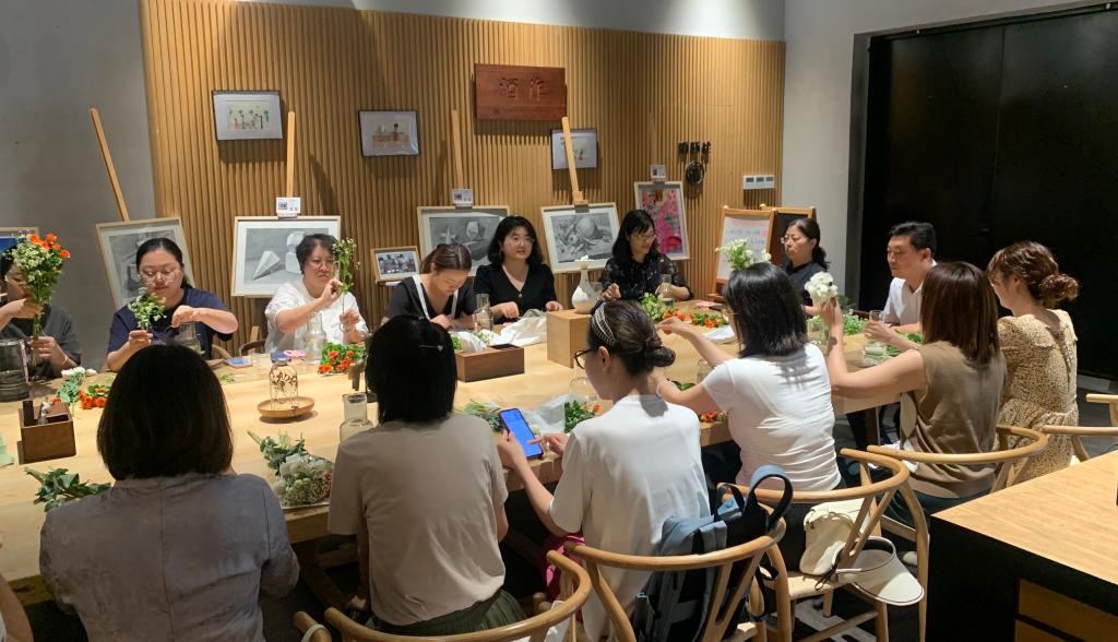 周庄万三酒庄坐落在江苏周庄镇的一座四面环水的“心”形小岛上,由一座老旧的黄酒厂改造而成,老师们抵达酒庄后,通过独特的沉浸式展厅,结合视觉、嗅觉与听觉等多种感官体验,了解传统黄酒酿造技艺,品尝黄酒及其衍生产品,了解首富沈万三的古老传奇和万三黄酒的故事。随后,大家一起参加插花课程,体验插花工艺。