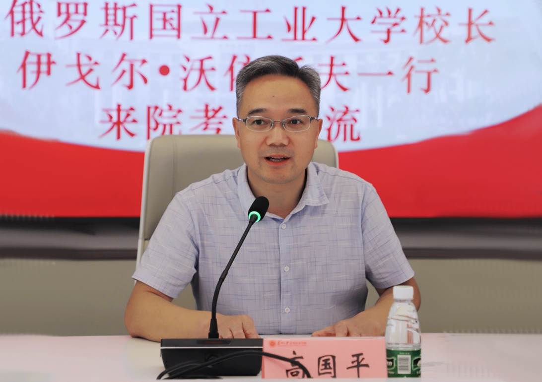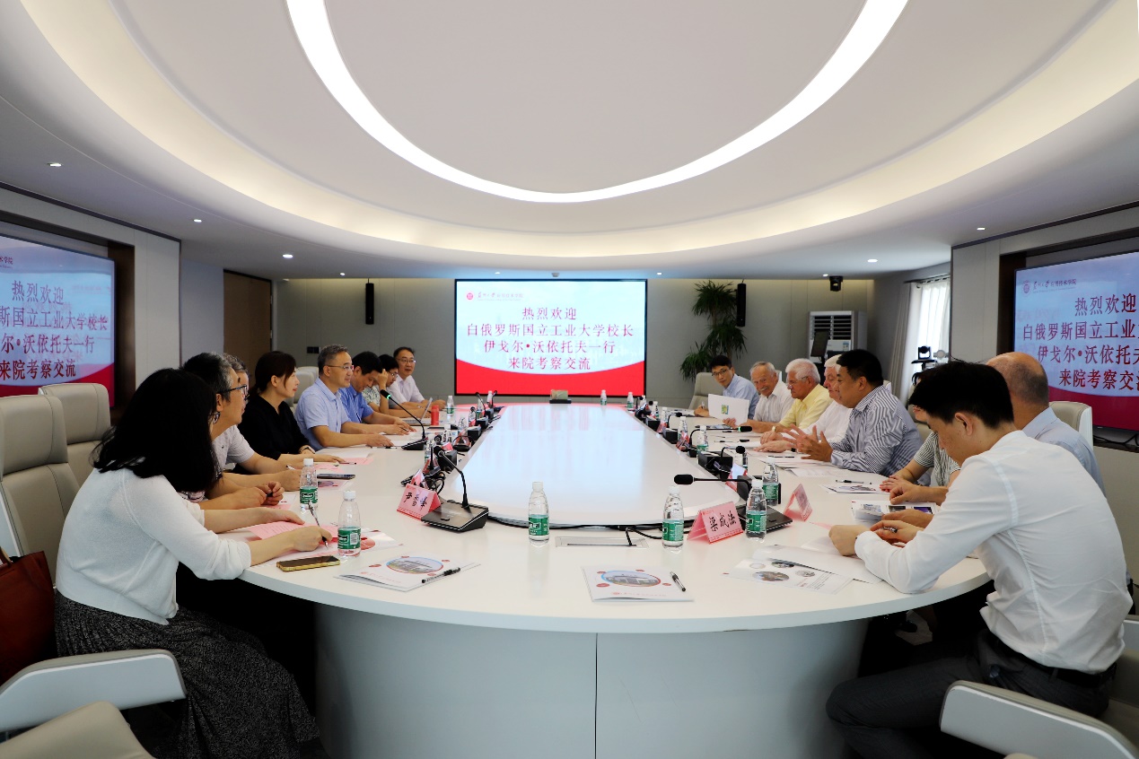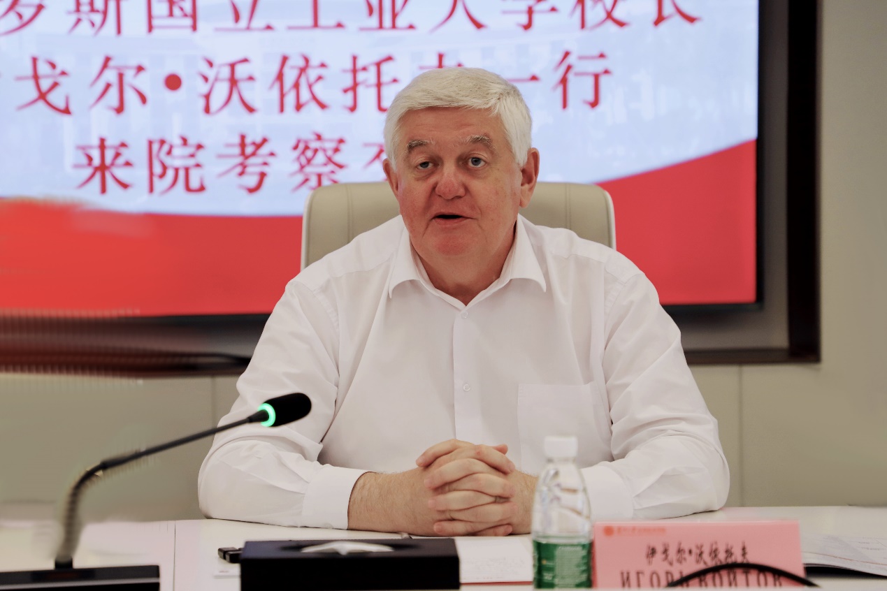 高国平首先对伊戈尔·沃伊托夫一行的到访表示热烈欢迎。他简要介绍了我院的办学历史、办学特色、办学成效。他指出,白俄罗斯是中国“一带一路”倡议的重要共建伙伴,中白两国交往密切,为两校建立合作关系奠定了良好的基础。同时,白俄罗斯国立工业大学与我院的专业布局有诸多相近之处,为我院学生留学深造提供了众多选择机会和便利条件。他希望双方以此为契机,实现资源共享,优势互补,形成独特鲜明的专业特色,谱写新时代中白高等教育交流与合作新篇章。