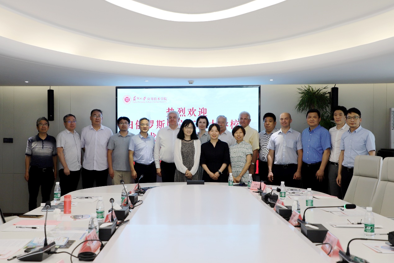 7月12日下午,在昆山市工业技术研究院副总经理薛晓雷和“一带一路”昆山国际先进技术研究院院长梁成法的陪同下,白俄罗斯国立工业大学校长、院士伊戈尔·沃伊托夫,力学与设计系主任、副教授奥列格·卡尔波维奇等一行5人访问我院。学院院长助理、校务部部长高国平,国际合作处处长茹翔,商学院副院长蒋薇薇,工学院院长助理、机械与工业机器人系主任李东亚,周庄文化旅游学院院长助理、服装系主任尹雪峰,ICT电信学院院长赵峰等出席了交流会。