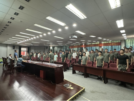会议伊始,教官队队长陈家豪代表全体承训教官进行汇报并庄严宣誓,郑重承诺会坚定立场信念,提高政治站位,创新带训思路,永葆青春本色,以昂扬的姿态开展好军训工作。