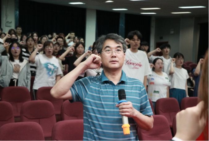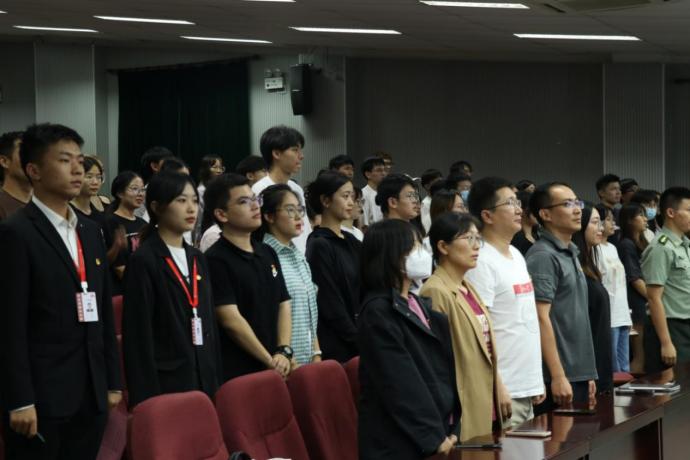 伴随《义勇军进行曲》,全体人员起立,齐声高唱国歌。开班典礼在庄严的国歌声中拉开了帷幕。