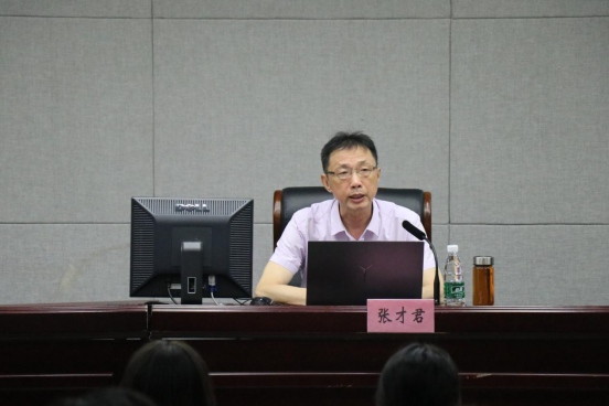 张才君教授从“今年在全党开展主题教育的具体安排和重大意义”“牢牢把握习近平新时代新思想的理论体系与核心内容”“自觉运用习近平新时代新思想武装头脑指导实践推动工作”三个方面展开讲述。