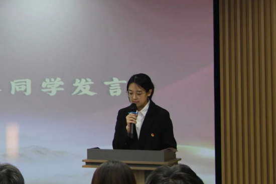 2023年青马班学员孔霁同学代表全体学员发言,她呼吁学员们充分担起学生干部的责任与使命,实时了解党团的动态,落实好组织下达的各项任务,把握正确的思想路线,发挥模范带头作用,以实现中华民族伟大复兴为己任,坚定理想信念,勇担时代使命,矢志艰苦奋斗,把个人的理想追求融入党和国家事业之中。