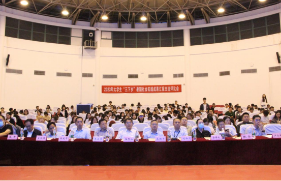 为深入学习贯彻习近平新时代中国特色社会主义思想和党的二十大精神,进一步深化我院暑期“三下乡”社会实践活动成效,10月18日下午,我院2023年大学生“三下乡”暑期社会实践成果汇报评比会在图书馆五楼报告厅举行。学院党委副书记、副院长钮秀山,党委办公室主任、宣教中心主任高国平,党委学生工作部部长王卫东,教学科研部部长刘和剑,财务处处长洪建中,学生工作处处长查伟大,保卫处处长金红祥,商学院党总支书记张宗,工学院党总支书记夏青,文旅学院党总支书记燕君,团委书记严永伟出席了本次会议。会议由团委副书记张玲玲主持。