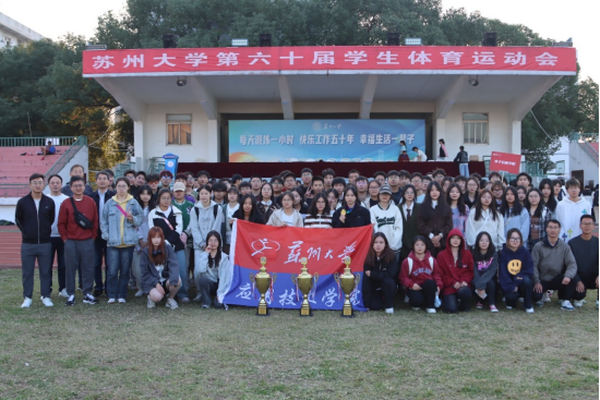 10月20日上午,苏州大学第六十届学生体育运动会在苏州大学东校区运动场举行。我院运动员代表队团结协作、奋勇拼搏,最终获得男子团体总分第二名、女子团体总分第二名、男女团体总分第二名的好成绩,同时学院获得优秀组织奖。