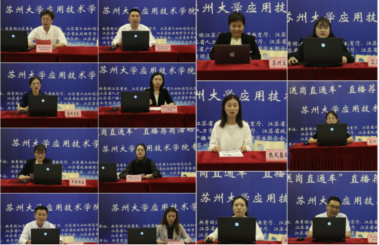 10月25日下午,“百校千企万岗”2023年江苏大学生就业帮扶行动“送岗直通车”直播荐岗活动在我院图书馆大厅一楼西侧举办。本次活动由共青团江苏省委、江苏省教育厅、江苏省工业和信息化厅、江苏省人力资源和社会保障厅、江苏省政府国有资产监督管理委员会、江苏省广播电视总台、江苏省学生联合会、江苏省青年联合会、江苏省青年商会共同主办,共青团苏州大学应用技术学院委员会、苏州大学应用技术学院招生就业处承办。