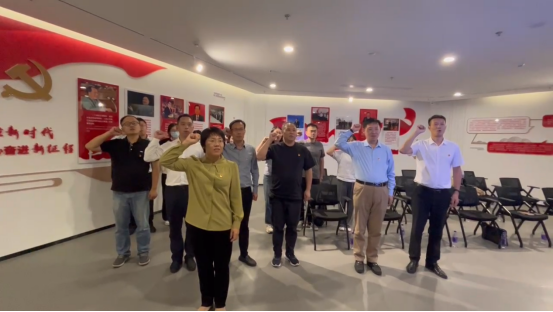 最后,在支部书记魏娟的带领下,全体党员面对鲜红的党旗,庄严宣誓,重温入党誓词,铿锵誓言在主题教育馆内回荡,用铮铮誓词宣示了马克思主义信仰、共产主义信念以及对党和人民的忠诚。