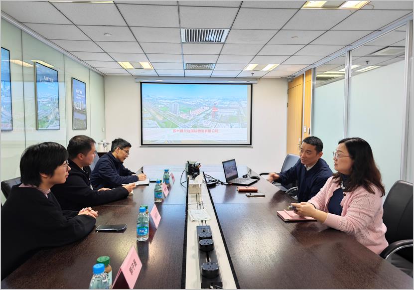 苏州得尔达国际物流有限公司(以下简称得尔达公司)是苏州工业园区管委会下属企业——苏州物流中心有限公司投资的全资子公司。座谈会前,张萌带领我院调研人员参观了母公司中心展区,专业讲解了关于中国物流业现状、特色产业体系及苏州工业园区现代物流园各项创新服务等内容。