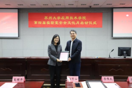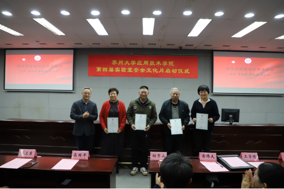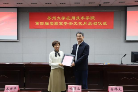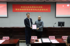 启动仪式上,负责管理实验室的四个二级单位分别向学院递呈了《实验室安全责任书》;学院党政办公室主任、宣教中心主任高国平和学生事务部部长、学生工作处处长查伟大分别为实验室安全督导员和实验室安全学生督查员颁发聘书;后勤与资产处处长王卫东为第三届实验室安全文化月“我和我的实验室”摄影比赛获奖的教师颁发了荣誉证书,学生代表覃姝荻宣读了《实验室安全倡议书》。