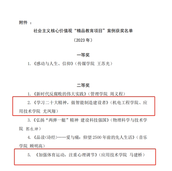 近日,苏州大学关心下一代工作委员会发布2023年“社会主义核心价值观‘精品教育项目’”案例评选结果。我院关工委报送的《学习二十大精神,做智能制造建设者》《加强体育运动,注重心理调节》项目,荣获二等奖2项。