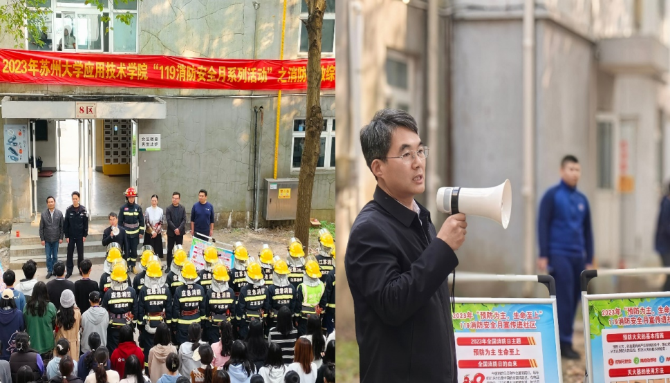 为加强“一站式”学生社区安全管理,增强学生消防安全意识,提高学生社区、教学楼等人员密集场所发生火灾及紧急情况时,广大师生的应急快速反应能力,11月23日下午,学院保卫处联合昆山市公安局周庄派出所、昆山市消防救援大队周庄消防中队在学院“一站式”学生社区八区、安如楼东侧停车场等地点,开展2023年“119”消防安全月系列活动之消防综合演练。