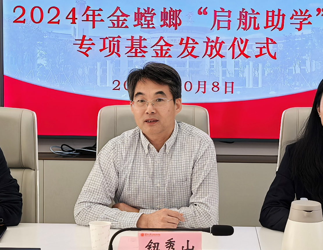 10月8日,2024年金螳螂“启航助学”专项基金发放仪式在学院行政楼512会议室举行。学院党委副书记、副院长钮秀山,苏州金螳螂公益慈善基金会秘书长徐嘉、项目经理袁博伟受邀出席。相关职能部门负责人、二级学院辅导员代表及获助学生参会。仪式由学生工作处副处长赵林卫主持。