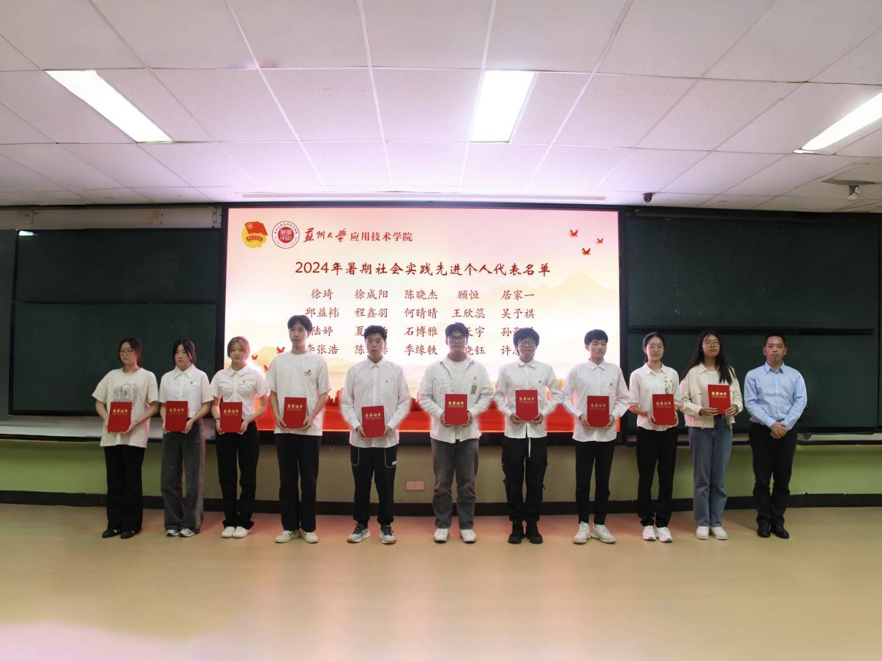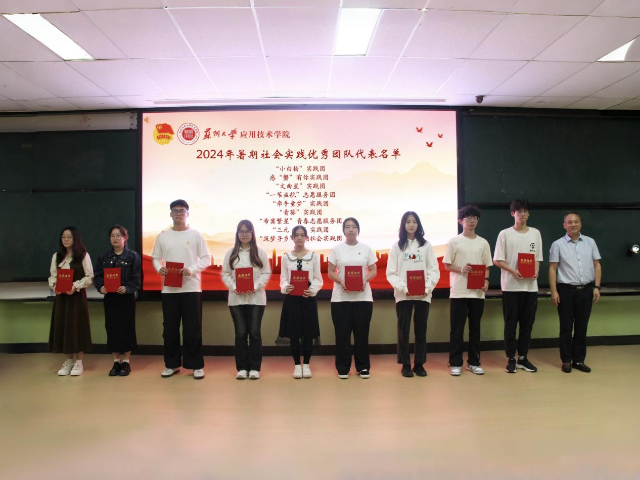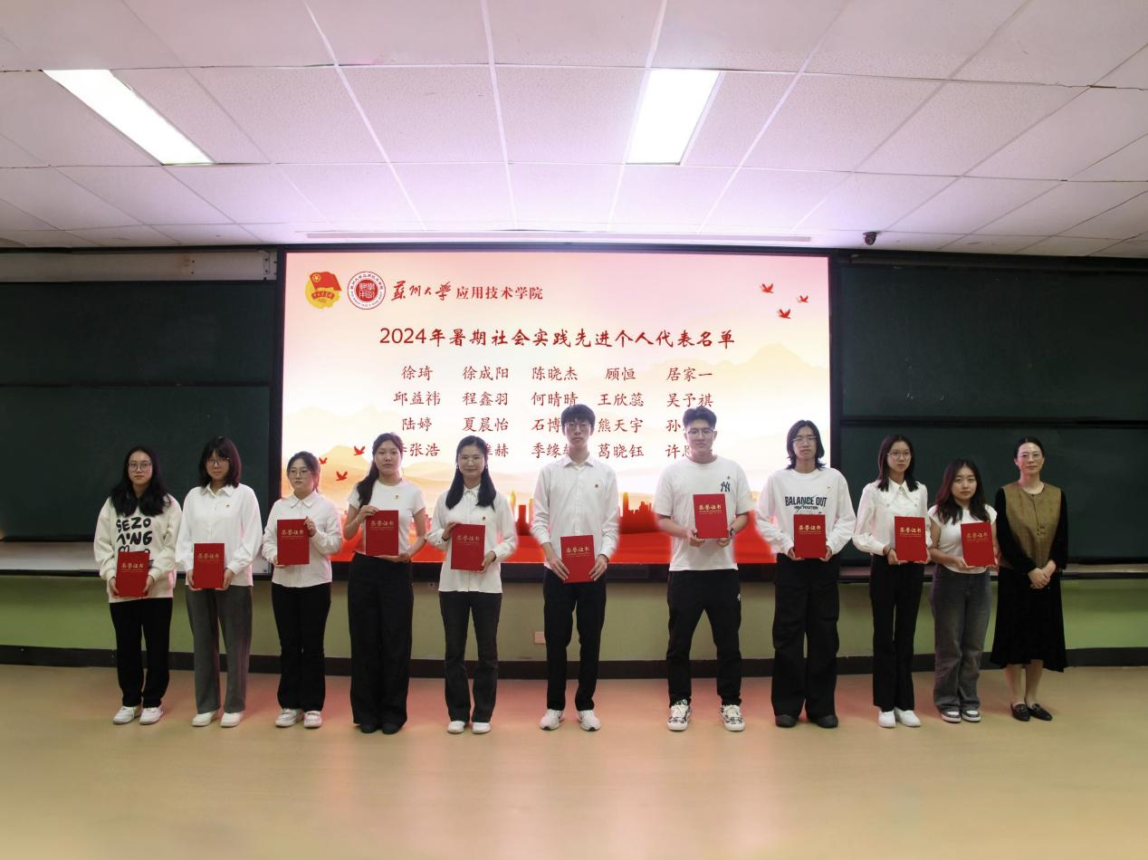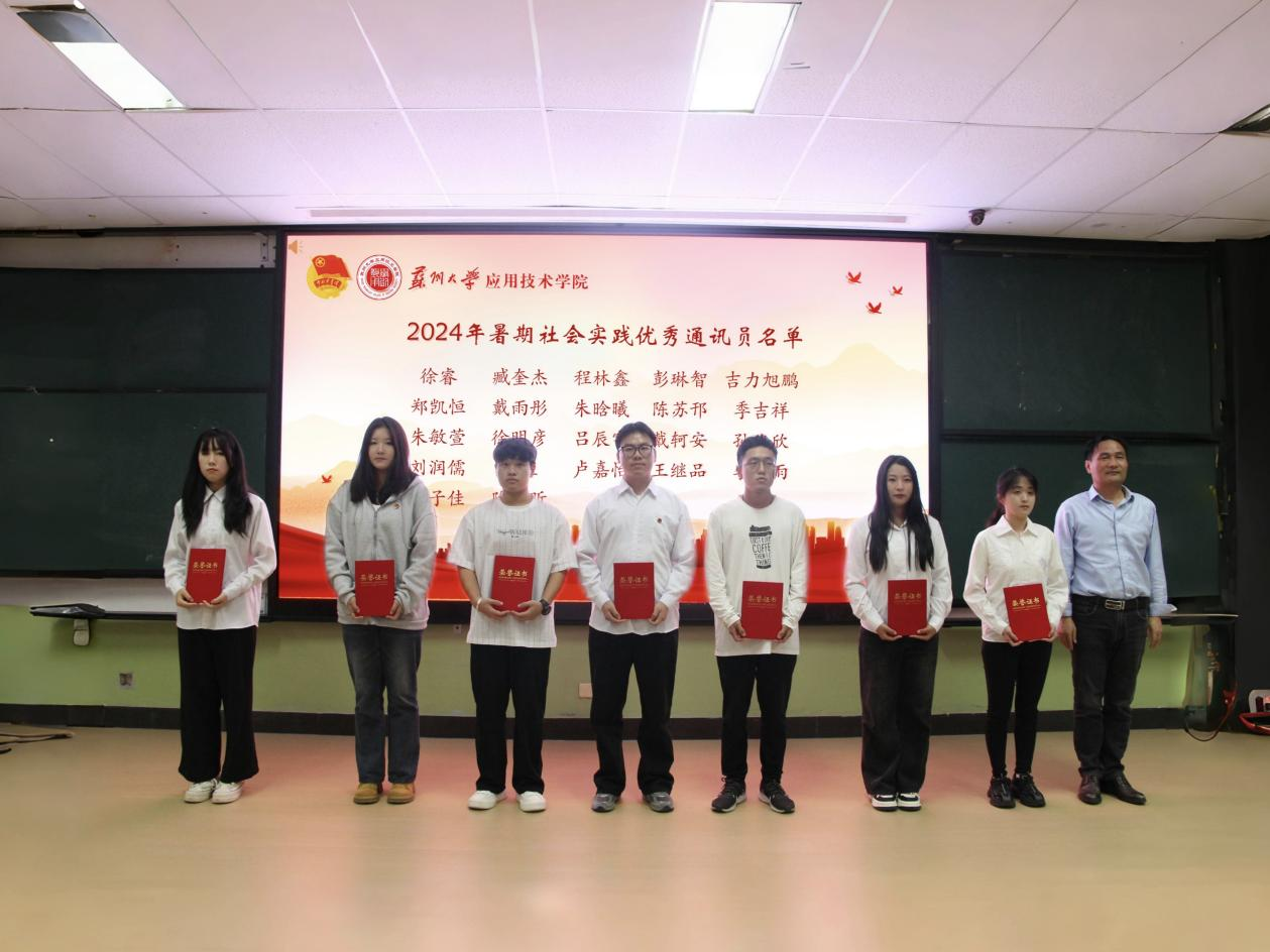 会上对2024年暑期社会实践活动中涌现出的集体和个人进行了表彰。周庄文旅学院获学院2024年大学生“三下乡”暑期社会实践工作“优秀组织”奖称号。