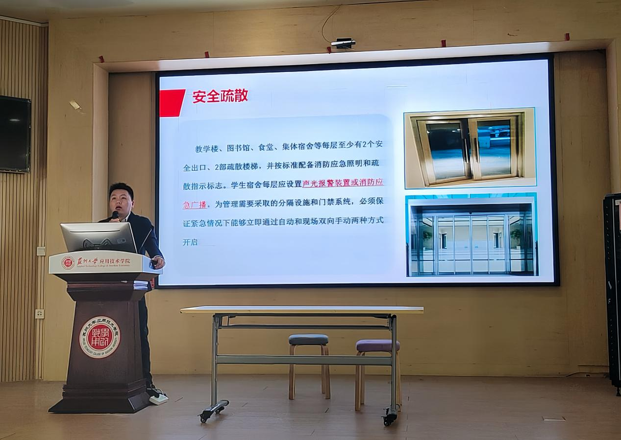 讲座当天,现场座无虚席,气氛热烈。张许龙首先通过一系列触目惊心的火灾案例,向在场的师生员工展示了火灾的无情与危害,强调了消防安全的重要性。他指出,火灾不仅会造成巨大的财产损失,更可能威胁到人们的生命安全,因此,每个人都应该时刻保持警惕,提高自我防范意识。随后,张许龙着重针对校园内常见的火灾隐患点,如食堂、教室及公共区域等,进行了详细的介绍。他深入讲解了火灾的预防、初期扑救、疏散逃生等方面的专业知识和技能。在此期间,特别强调了日常生活中容易被忽视的消防安全细节,提醒大家要定期检查电器线路,严禁私拉乱接电线,避免在人员密集场所宿舍等区域附近使用违章电器、明火等危险行为。