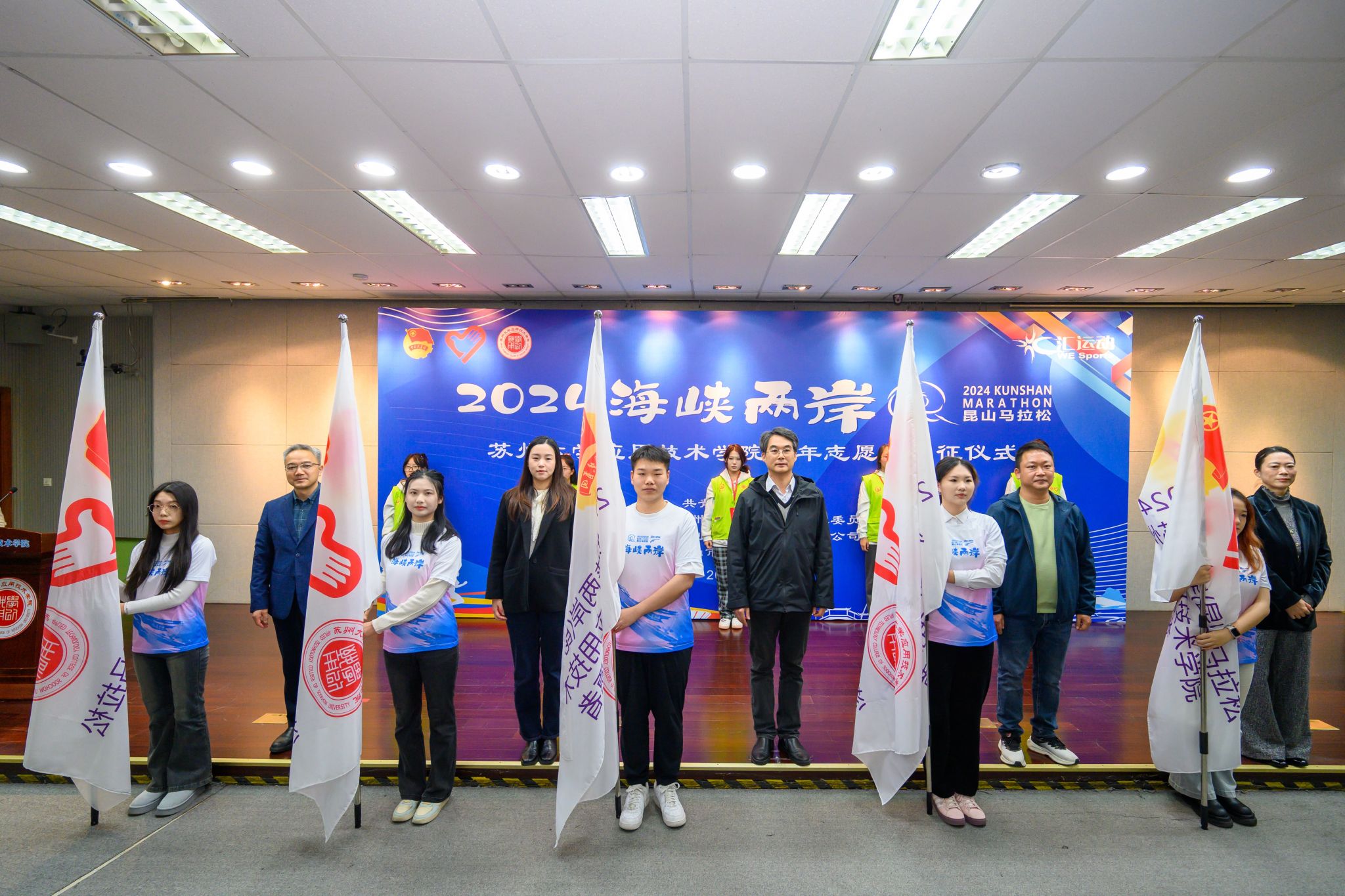 在志愿者宣誓仪式中,志愿者代表徐睿同学带领全体参会志愿者高举右手庄重宣誓:我志愿服务2024海峡两岸(昆山)马拉松,严守纪律,服从安排;全力以赴、团结协作;弘扬马拉松精神,践行志愿服务理念;为昆山争光,为苏应添彩;让志愿者的微笑成为昆马最好的名片!