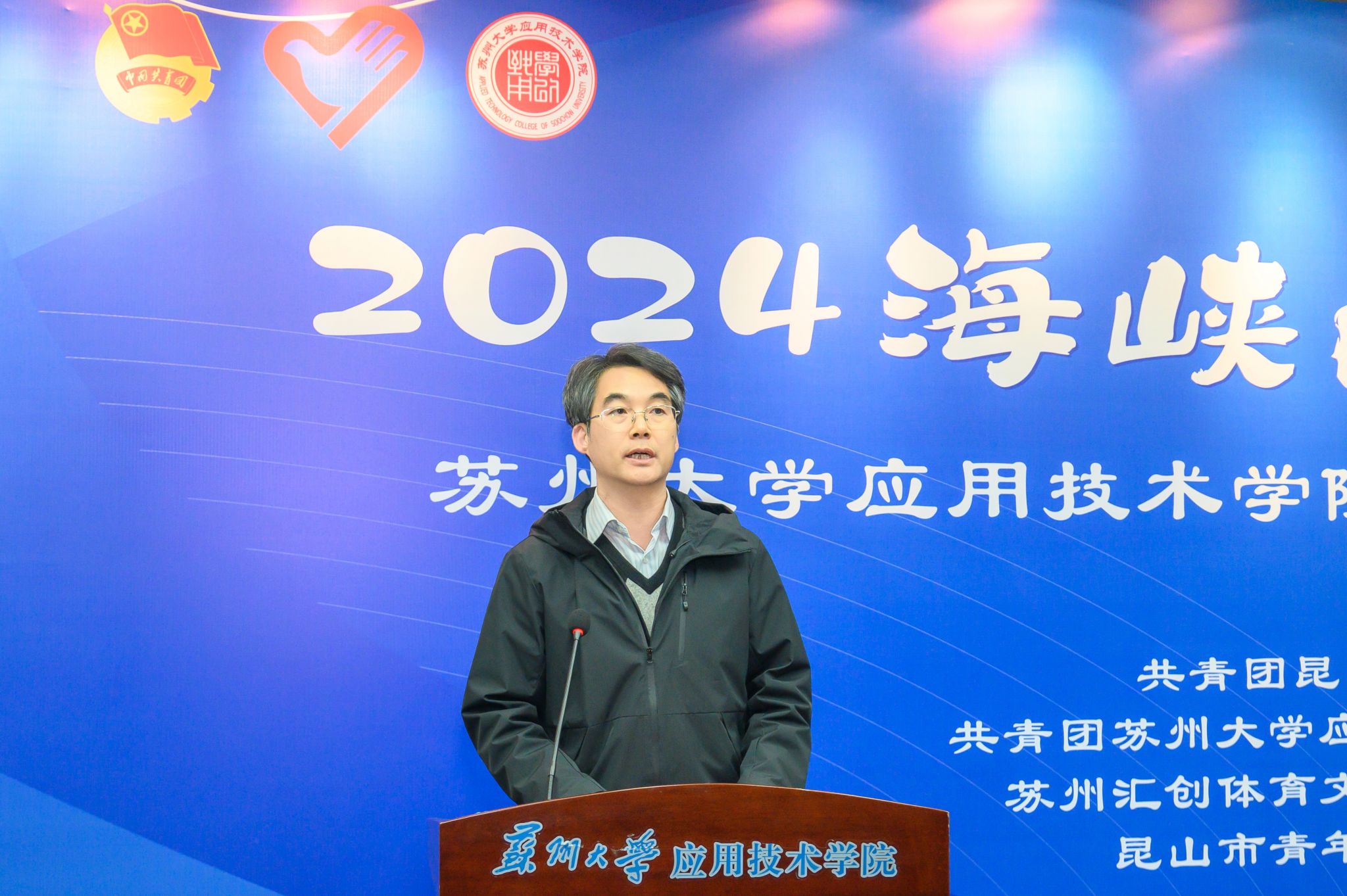 学院党委副书记、副院长钮秀山代表学院向出席出征仪式的各位来宾表示热烈的欢迎,向参与本次海峡两岸(昆山)马拉松的全体师生致以亲切的问候和崇高的敬意。他在讲话中表示,本届昆山马拉松以“两岸一家亲”为主题,是一场承载着深厚文化底蕴与美好期许的体育盛事,这不仅是一场马拉松爱好者的盛会,更是一场奔赴“两岸一家亲”的文化之约。他强调,我院1400余名学生志愿者助力本次海峡两岸(昆山)马拉松志愿服务工作,这是大赛组委会和昆山团市委对我院的充分信任,是对我院志愿服务工作水平的高度认可,他希望,全体同学要珍惜把握服务本次海峡两岸(昆山)马拉松的机会,不仅要把它当成一项光荣的任务,更要把它当成一次难得的人生体验,广大同学要以昂扬的姿态、饱满的热情和周到的服务,向来自世界各地的选手们充分展示苏应学子的良好形象和青春风采,为2024年海峡两岸(昆山)马拉松的成功举办提供坚实的服务保障。