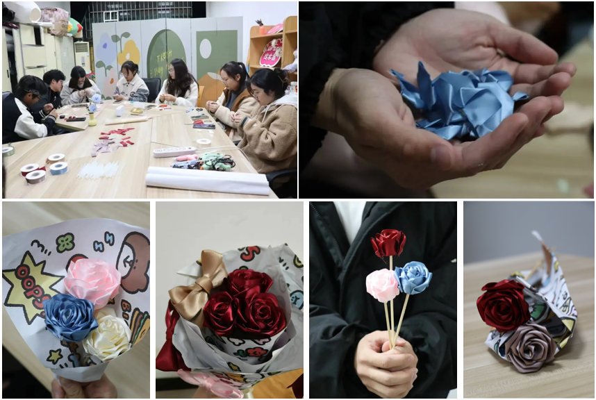 “千丝万缕在爱中绽放”丝带花制作活动,让参与者亲手编织情感与祝福。每一朵丝带花都凝聚着制作者的心意,传递着温暖与关怀。活动不仅锻炼了动手能力,更让美好的期许与祝愿通过精美的丝带花得以传递,温暖人心。