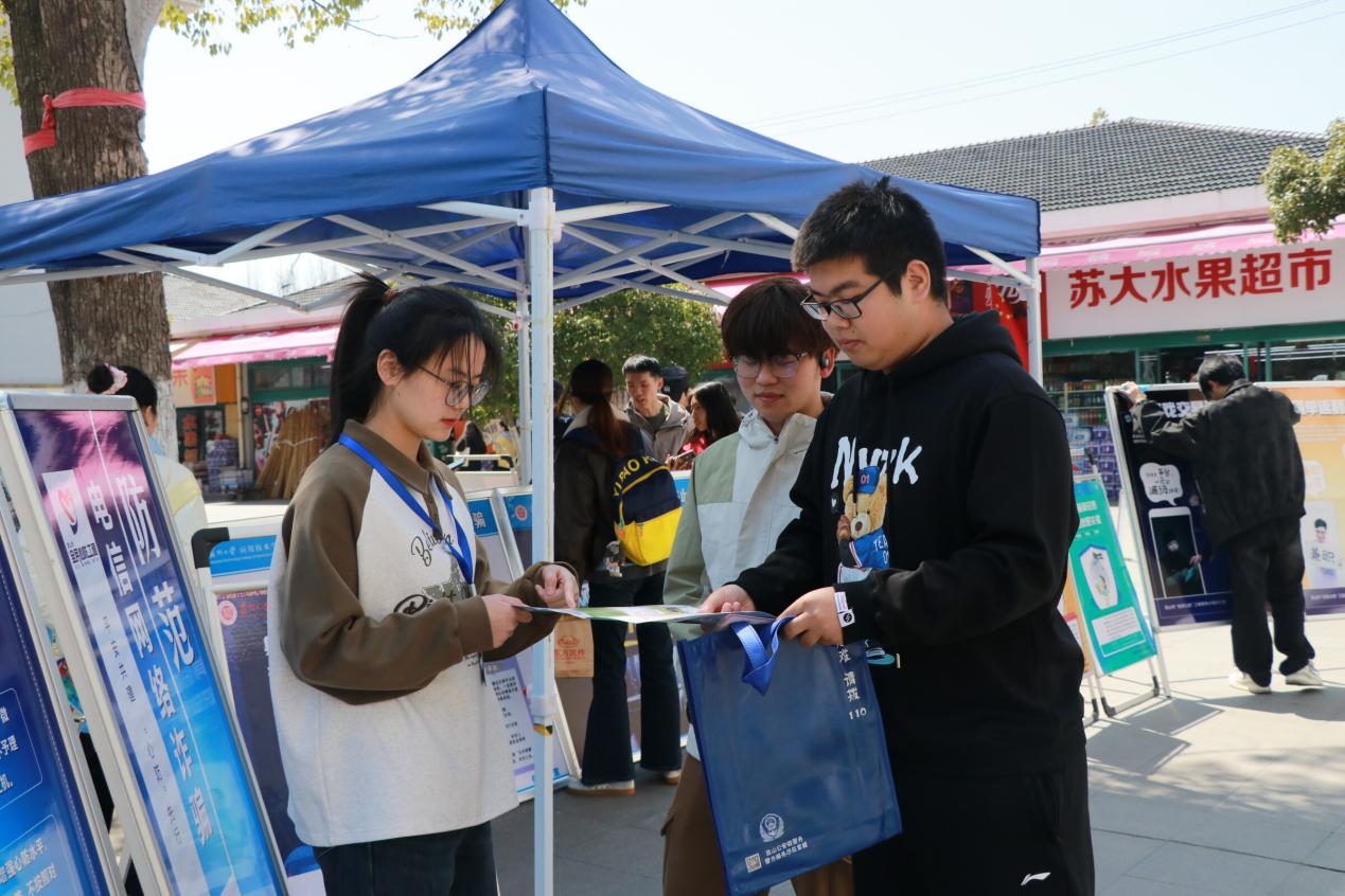 3月21日,我院与昆山市公安局周庄派出所在柚强广场联合举办了一场以“防诈骗,筑平安,共建和谐美好校园”为主题的防范电信网络诈骗宣传教育活动。学院党委副书记、副院长钮秀山,学生事务部部长、学生工作处处长查伟大,保卫处处长金红祥,周庄派出所警员代表参加活动,与数百名学生共同学习反诈知识,提升防范意识。