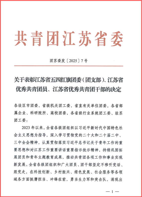 近日,共青团江苏省委发布《关于表彰全省五四红旗团委(团支部)、全省优秀共青团员、全省优秀共青团干部的决定》,我院团委被授予“江苏省五四红旗团委”称号。本次表彰工作中,全省共有两所独立学院团委荣获“江苏省五四红旗团委”称号,这是我院团委首次获得省级五四红旗团委表彰。